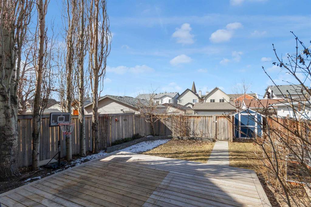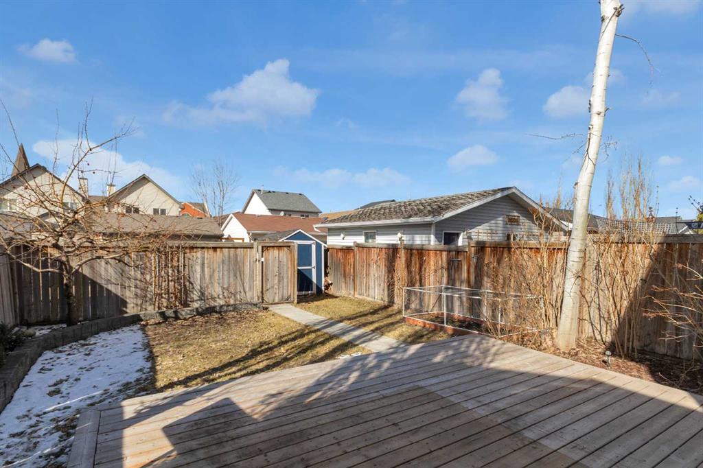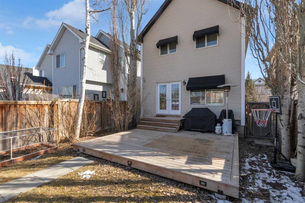 **** OPEN HOUSES … SATURDAY/SUNDAY 1:00-3:00 PM March 28 and 29. On one of the most neighbourly streets of McKenzie Towne, this lovely home is nestled in along a MATURE TREE-LINED STREET. A STAMPED CONCRETE WALKWAY leads you to the inviting FRONT PORCH creating a warm and welcoming entrance as well as a place to enjoy a quiet morning coffee or charming repast as the street awakens. This 1,339 square foot two-storey, features an OPEN PLAN main floor that is an inviting gathering place for countless coffee visits and neighbourhood play afternoons. HARDWOOD FLOORS run throughout the main living area, providing a timeless appeal. The THREE SIDED FIREPLACE adds to the welcoming ambiance, making the space cozy and inviting no matter the season. All windows are fitted with SHUTTERS, allowing for easy manipulation of natural sunlight or privacy, as desired. The spacious, functional kitchen boasts QUARTZ COUNTERTOPS and STAINLESS STEEL appliances, including a newer GAS RANGE (2021). The ISLAND provides a BREAKFAST COUNTER and a DUAL “NUGRANITE” SINK paired with PEARL SINK FAUCET (2021) that delivers convenience and style for any discerning chef. The LARGE DINING AREA is designed to encourage family and friends participation in shared meals and lively “Tell us all about your day” conversations. FRENCH DOORS from the kitchen open directly onto the WEST FACING BACKYARD OASIS for a visible connection with the kids, while they engage in their outdoor activities . The backyard is a true sanctuary, featuring an APPLE TREE, RASPBERRIES, RHUBARB, and VALIANT BLUE/PURPLE GRAPE VINES —which yielded six jars of jelly last year. A private, 17’ x 17’ 7” GRADE DECK with built-in PERIMETER LIGHTING is bordered by lined trees on each side, creating an ideal spot for PRIVATE SUMMER BARBEQUES or a relaxing outdoors evening. When summer temperatures rise, stay comfortable with AIR CONDITIONING (replaced in 2023) and west-side WINDOW AWNINGS. A PAVED BACK LANE leads to the property’s 2 car PARKING. Upstairs, the primary bedroom features a large WALK-IN CLOSET and a FOUR-PIECE ENSUITE. Two additional good-sized, tastefully decorated, bedrooms and a MAIN FOUR PIECE BATHROOM that completes the upper level. This GEM of a home is just a few minutes’ walk from the COMMUNITY WATER PARK and local SCHOOLS, making it an ideal choice for families. The basement is ready for your inspiration and requirements. Don’t miss your chance to see this beautiful FAMILY HOME— Why not take a moment to LINK INTO THE VIRTUAL TOUR ON THIS PROPERTY.