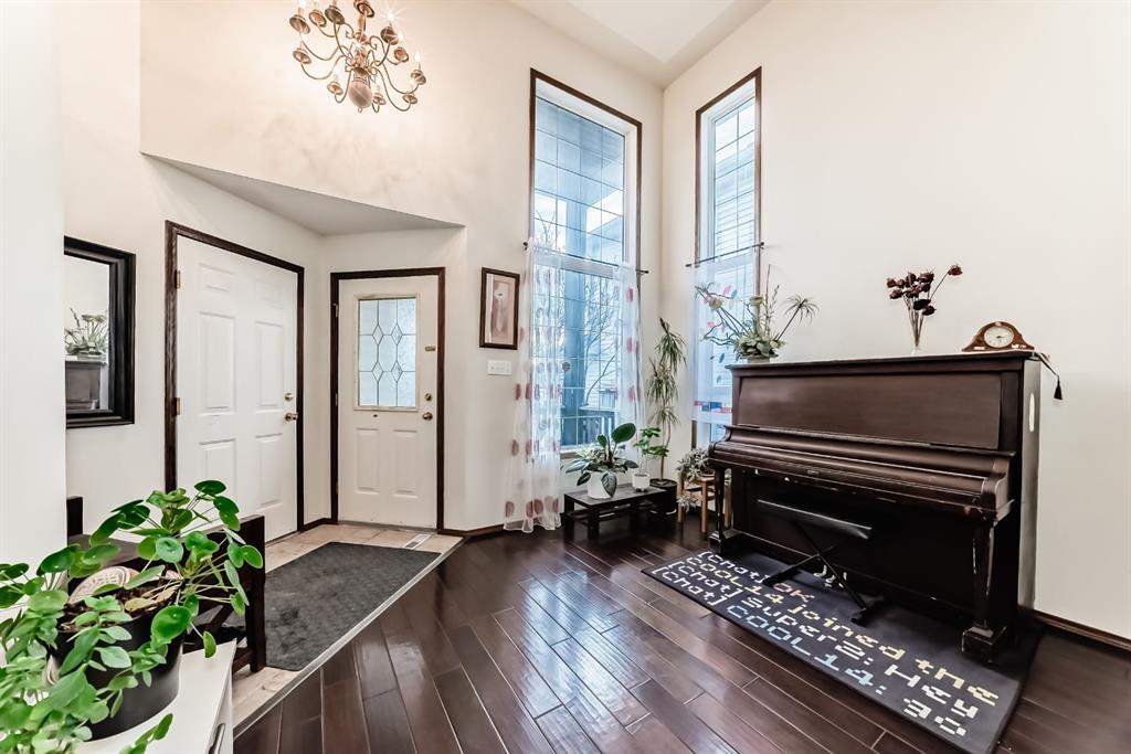 Located on a quiet street, this home backs directly onto a beautiful green space and playground. The seller has recently invested in quality updates, including a new two-tier deck, hardwood flooring, and a new refrigerator with gas stove. The main level features an open layout with soaring vaulted ceilings and 12-foot windows that fill the living and dining areas with natural light. The kitchen is finished with rich cherry-stained oak cabinets and a central island. The third level family room provides a large, comfortable living space. It offers a walk-out to the spacious two-tier deck, which is also accessible from the kitchen. The entire top floor is dedicated to the private master suite. This expansive space includes double walk-through closets and a large ensuite bathroom with a jetted tub, separate shower, and a skylight. The ground level provides a private bedroom and a full bathroom, making it ideal for guests or roommates. On the fourth level, you will find a laundry area with a washer and dryer, plenty of storage space, and a flexible room perfect for an office or hobby room. New roofing in 2023 and water heater in 2024. The location provides easy access to Deerfoot Trail and shopping at 130 Ave SE. Douglasdale School is a short walk away, and there is a playground right behind the backyard.