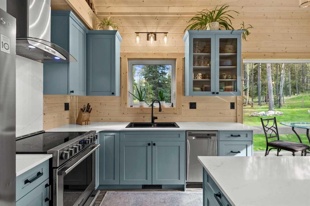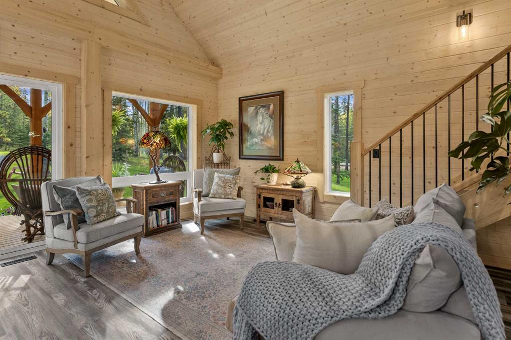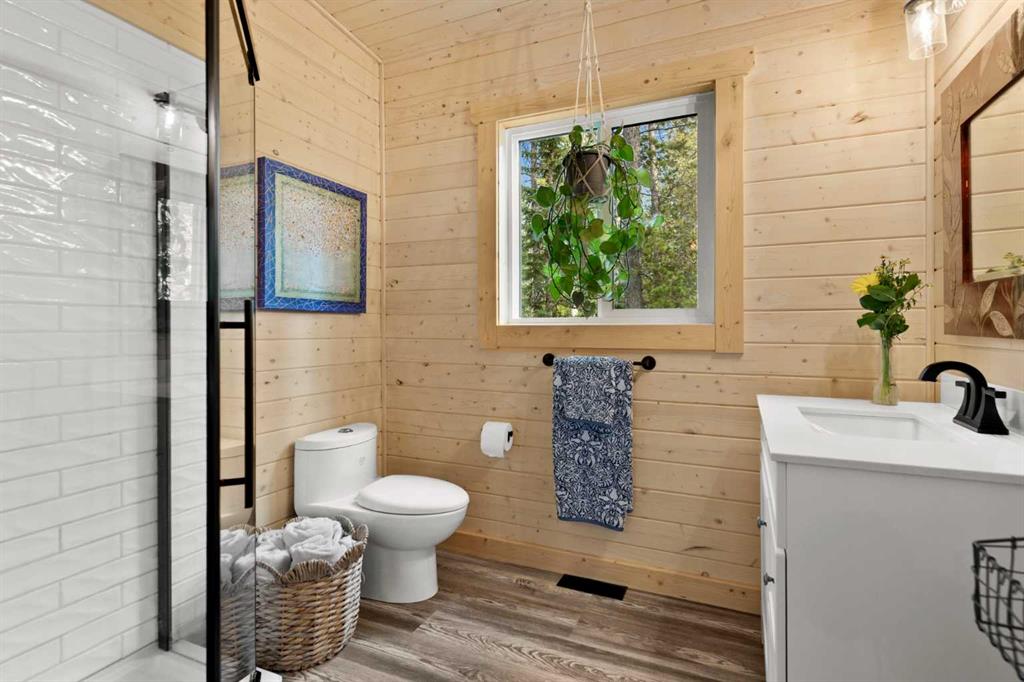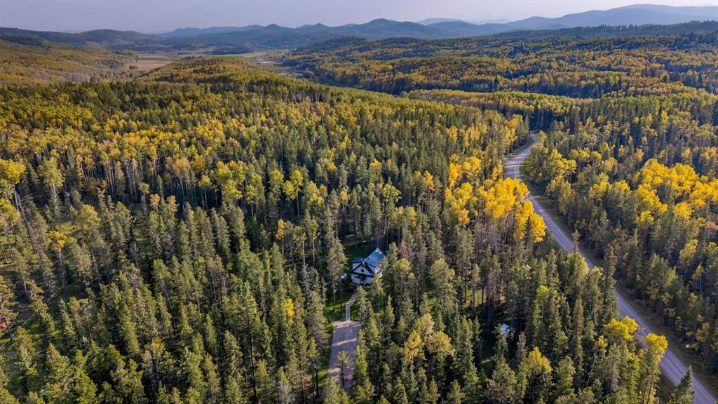 Set on 5.51 acres in desirable South Bragg Creek, this property is a rare blend of modern comfort and natural beauty. Towering mature forest, thoughtfully cleared of deadfall, creates lush vegetation, manicured lawns, and a true park-like setting. The fenced yard is ideal for children or pets and offers endless room to enjoy the outdoors. The classic 1.5-storey home, built in 2023, offers 2 bedrooms and 2 full bathrooms, showcasing warm pine interiors with fully insulated walls, luxury vinyl plank floors, quartz countertops, and upgraded stainless steel appliances—all within a bright, open-concept layout. Designed for both style and function, features include Hardie board siding, a metal roof, triple-pane windows, and low-maintenance finishes throughout. Both the front deck and covered back deck capture the tranquility of the setting, while a massive in-ground firepit invites gatherings or quiet evenings under the stars. Practical features include a garden shed, horse shelter, RV electrical hookup at the house, and water with hydrant plus power ideally placed for a future horse waterer, or even garage/shop. With propane heating, on demand hot water heating and house electrical setup for a generator, the home is ready to operate off-grid if desired! All of this just minutes from Bragg Creek Hamlet and only 20 minutes to Calgary.
