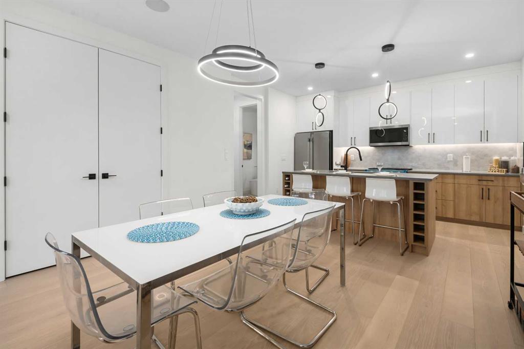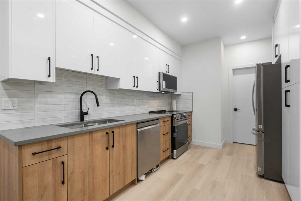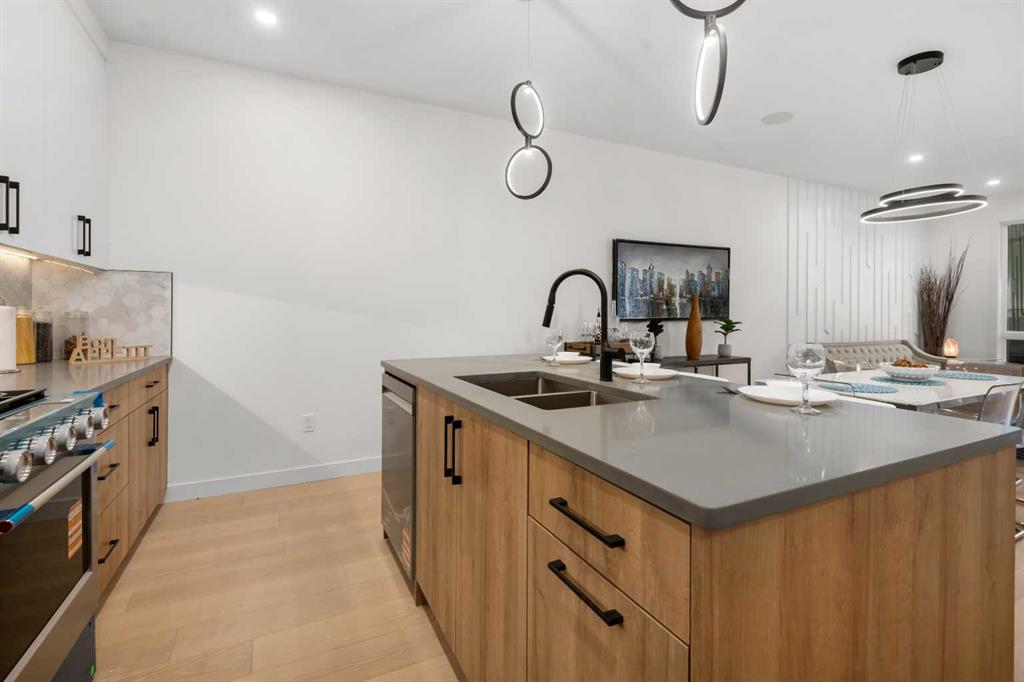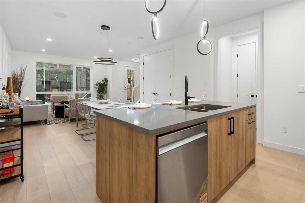 An excellent opportunity to expand your investment portfolio in the heart of Marda Loop. This BRAND NEW 8 unit complex is complete and ready for immediate possession. Situated on a large 50×125 ft. lot, on a tree lined street, just steps from river park and the heart of marda loop. Easy transit access to MRU and downtown. The upper 3 storey units offer over 1800 sqare feet on three levels, above grade and an addtional 575 square feet basement suites with separate entrances (Units can be connected to basement directly if desired) High quality modern finishes throuhout this spacious townhouse. Hardwood, quarts, stainless steel appliances, ceramic tiles. Each upper unit features three bedrooms and 3 and a half baths. An excellent main level with living, dining and large kitchen with Island. The second floor boats two large bedrooms both with large closets and ensuites. The top third floor showcases an amazing Primary suite complete with a huge walk in closet, large ensuite with walk in 2 person shower. Dual sinks, and a full east facing private balcony. The basement suites boast high ceilings, full moden kitchens, ensuite laundry and separate spacious bedrooms with large closets. Single detached garages for all units. (4) This build can be eligible for CMHC MLI Select financing. Rental rates in the area have remained stable with low pre dominant vacancy. Possible gross monthly income of $15,000-$1,7000. Furnished units can attain more and can be included in the purchase price as required. Full appliance packages for all 8 units included, and all units a separately metered. A great opportunity in a thriving community.