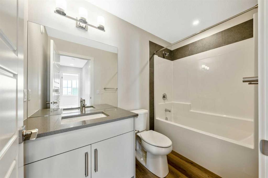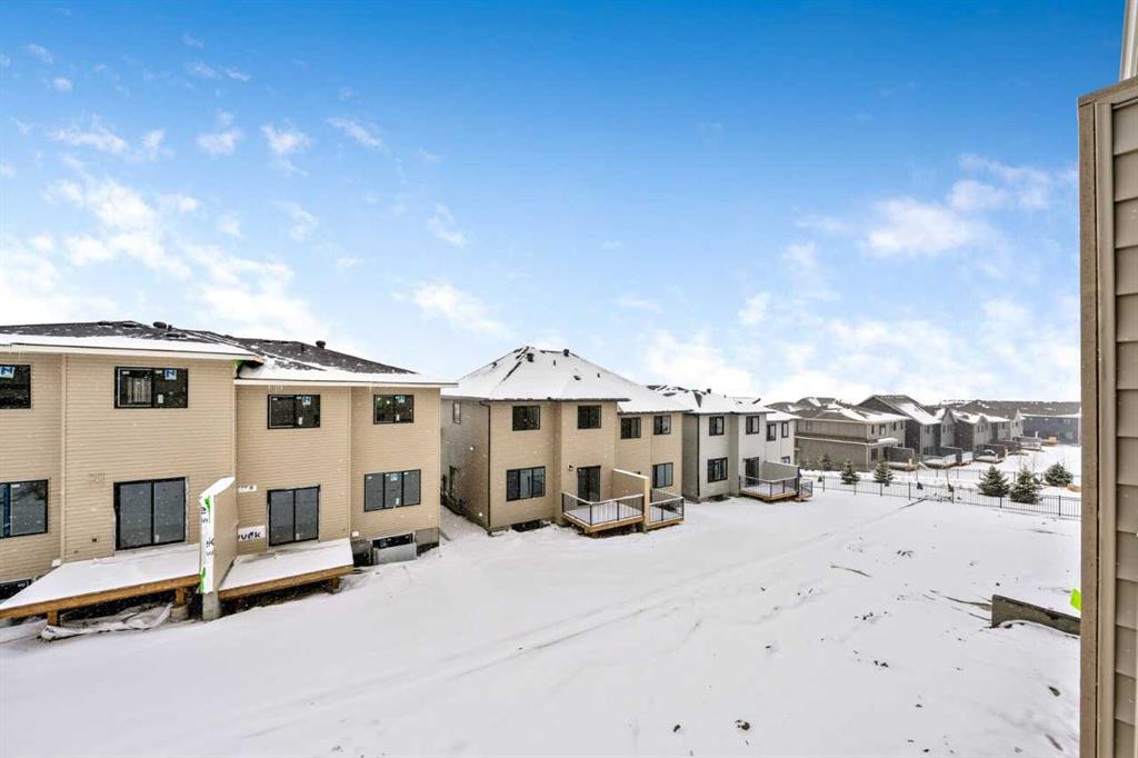 No-Condo Fee Townhome| Walkout Basement | Double Attached Garage | Mountain Views! Welcome to the Eden B at Heritage Blvd – a stunning 1,400 sq ft, 3-bed, 2.5-bath town home in the sought-after West Hawk community of Cochrane. This NO-CONDO FEES WALKOUT home features a south-facing backyard and breathtaking MOUNTAIN VIEWS from both the covered main floor deck and primary bedroom. The DOUBLE ATTACHED GARAGE offers secure parking. The open-concept main floor impresses with 9′ ceilings, expansive windows, and luxury vinyl plank flooring throughout. A walk-through pantry and mudroom keep daily life organized, while second-floor laundry adds convenience. Built with a high-efficiency furnace, hot water tank, and HRV system for year-round comfort. Plenty of upgrades including an electric fireplace & melamine shelving to the pantry & primary walk-in closet and knockdown ceilings. MOVE-IN READY with mountain views and modern living!