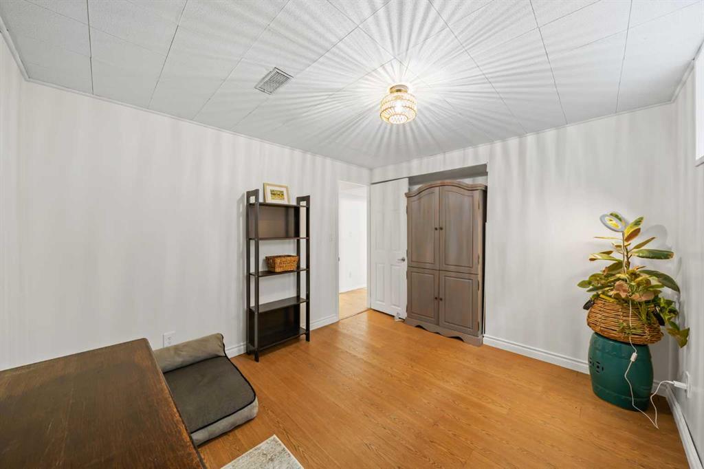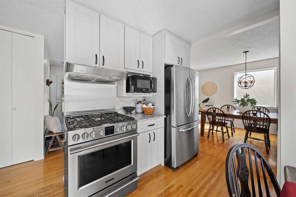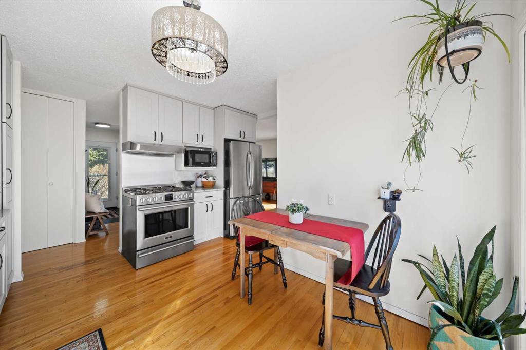 This well-maintained 1960 bungalow offers over 1,900 sq. ft. of developed living space, featuring 5 bedrooms (3 up, 2 down) and 2 full bathrooms. The main floor showcases gleaming original hardwood flooring, a welcoming and spacious living room and a bright dining area. Enjoy the benefit of a freshly painted main floor, along with an updated 4-piece bathroom.