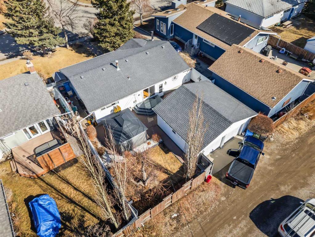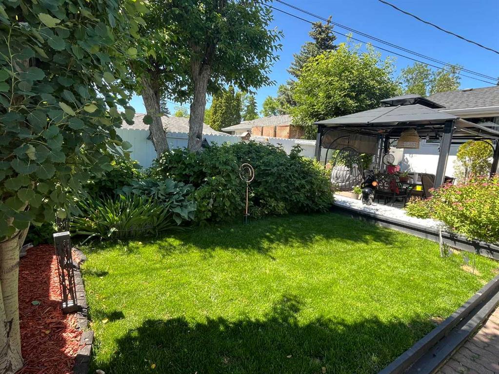 Enjoy the beautifully maintained, sunny south-facing yard where outdoor living extends the home with a true backyard oasis. An oversized garage features a new overhead door, two openers with smart technology, and an extended parking pad for guests. A landscaped berm with mature trees behind the property provides a natural buffer from 17 Ave and the LRT, creating a surprisingly quiet and private setting.