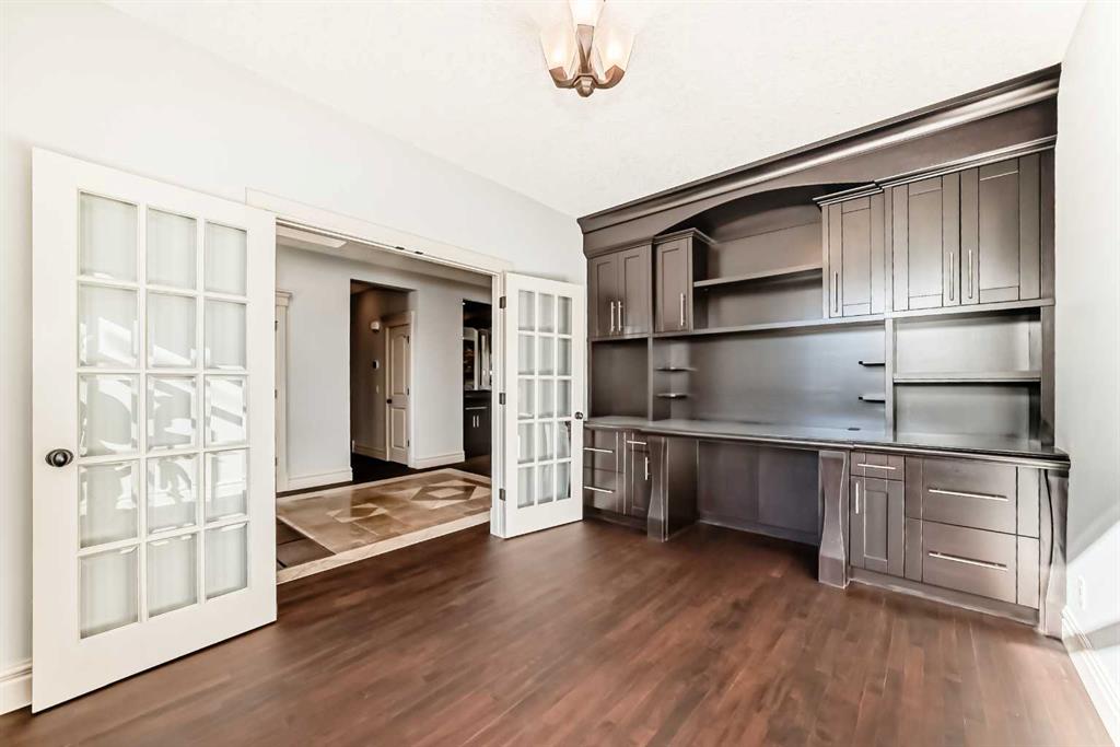 Step inside to discover a thoughtfully designed interior where sophisticated finishes meet classic style. The gourmet kitchen is a true showpiece, featuring ceiling-height cabinetry, granite countertops, a walk-in pantry, a butler’s pantry, and high-end appliances. It flows seamlessly into the generous living area, creating the perfect setting for both relaxed everyday living and elegant entertaining. A main floor office with custom built-ins and rich hardwood floors throughout further elevate the home’s refined character.