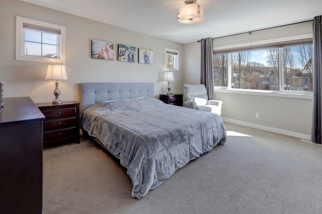 Beautiful Cedarglen-built home perfectly situated on a corner lot in sought-after Cranston Riverstone. From the moment you step inside, you’re welcomed by a spacious entry, 9-foot ceilings, & rich hardwood flooring that flows throughout the main level. The stylish kitchen is designed for both everyday living & entertaining, featuring two-tone cabinetry, granite countertops, a massive island with eating bar, & a walk-through pantry leading to the mudroom. Imagine family dinners & fun dinner parties in the dining area! The bright & inviting living room is anchored by a cozy gas fireplace, while the main floor office with double French doors & built-in workspace makes working from home effortless. Upstairs, the impressive bonus room with coved ceiling offers the perfect place to unwind. The primary suite is a true retreat, complete with a dream ensuite & a large walk-in closet, while two additional bedrooms provide plenty of space for family or guests & the upper laundry is very efficient. The fully finished basement adds incredible versatility with a large open area ideal for a rec room, gym, or games space, plus a bathroom rough-in & 2 large egress windows for future development. Step outside to your private backyard oasis, featuring mature trees, a large deck with privacy glass, retractable awning, gas BBQ hookup, & a spacious shed—perfect for relaxing or entertaining all summer long. All this just steps to a beautiful network of nature walking paths!! Welcome home!!!