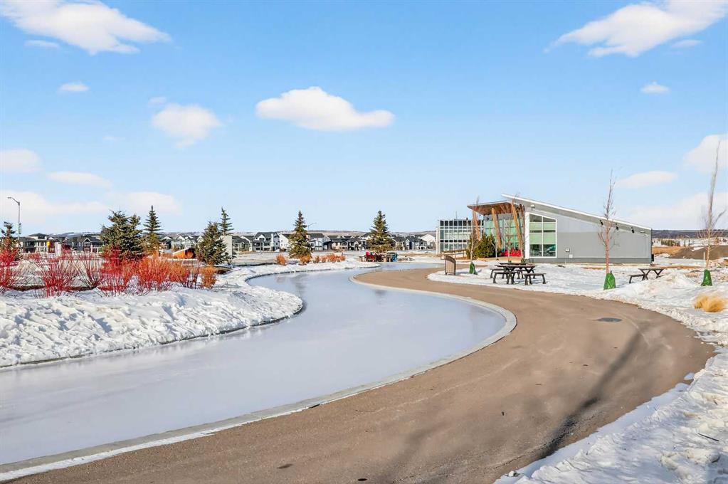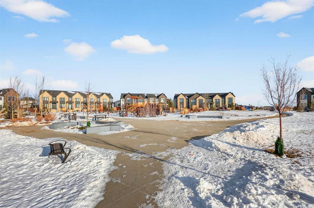 Experience the height of sophisticated living in this highly coveted luxury townhome, where a generous floor plan meets modern comfort and refined finishes. Proudly presented by StreetSide – this thoughtfully designed unit features 3 bedrooms, 2.5 bathrooms, and a front attached double car garage. The heart of the home is a spacious kitchen with a large central island, polished white quartz countertops, undermounted sink, upgraded extended upper cabinet height and an upgraded stainless steel Bosch appliances including a gas range. A cozy fireplace anchors the living room, while luxury vinyl plank flooring flows throughout the main living areas, complemented by gorgeous tile in the entry and bathrooms. The primary ensuite is a private sanctuary, complete with tile flooring, double sinks, a freestanding soaker tub, and an oversized tile-and-glass shower delivering spa-inspired comfort at home. The unfinished basement with roughed-in plumbing provides future potential for additional living space tailored to your needs. Professional landscaping and fencing complete your new home. Ideally located in the award-winning community of Harmony, residents enjoy Mickelson National Golf Course, private lake amenities, scenic walking and biking trails, and a wellness-focused lifestyle—just a shorty drive from Calgary city minutes and 45 minutes from the Rocky Mountains, where nature and convenience come together effortlessly