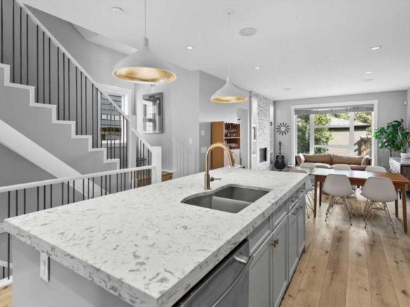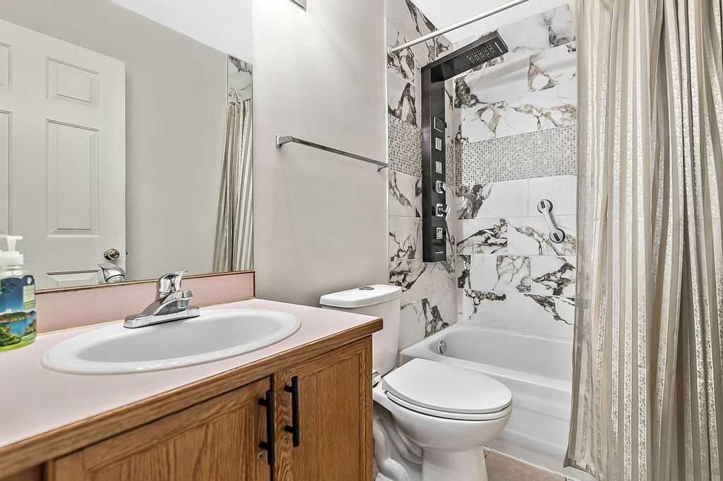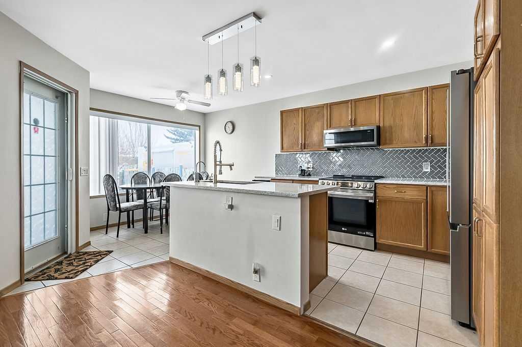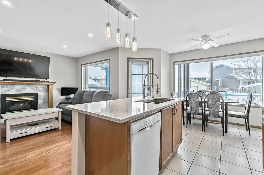Beautifully maintained two storey family home offering over 2,150 sq. ft. of developed living space and FOUR BEDROOMS. The main floor features a bright and inviting layout, highlighted by a spacious family room filled with lots of natural light, an open concept kitchen designed for both everyday living and entertaining, showcasing quartz countertops, a stylish backsplash, newer UPGRADED FRIDGE AND STOVE, and a reverse osmosis water system. The generous dining area includes a garden door leading to the covered rear deck, patio and large fully fenced backyard – ideal for children, pets and summer gatherings. Ceramic tile and hardwood flooring throughout the main level add warmth and durability. A convenient den/office completes this level, perfect for remote work or study. Upstairs, all bedrooms are generously sized. The primary suite offers a walk-in closet and a private 3 piece ensuite. The fully finished basement expands your living space with a spacious family room, fourth bedroom, a 4 piece bath, and a full kitchenette – an excellent setup for extended family, guests, or multi-generational living. Significant recent upgrades include a HEAT PUMP, FURNACE AND TANKLESS HOT WATER SYSTEM (ALL INSTALLED IN 2024), along with a roof approximately 10 yrs old. These improvements enhance efficiency and provide confidence and peace of mind. A front attached garage and driveway offer ample parking and storage. The exterior custom programmable lighting is a great extra bonus. Situated in a welcoming, family friendly neighbourhood, this move in ready home is the complete package – space, upgrades and thoughtful design all in one exceptional property.