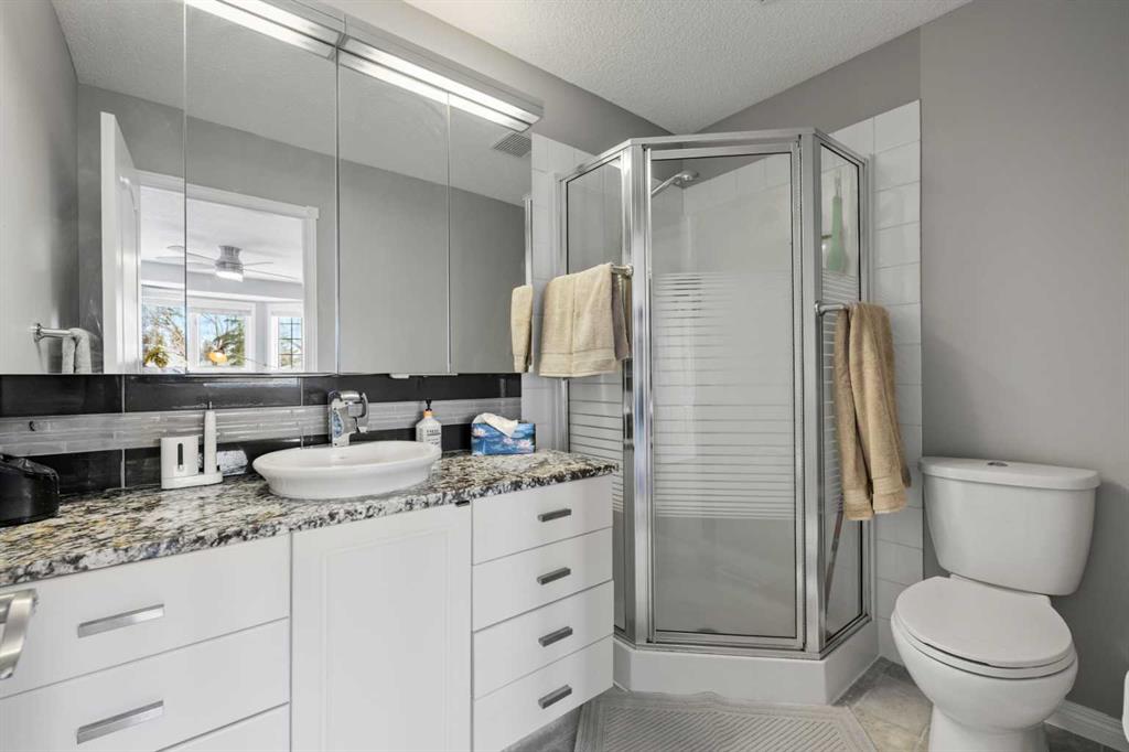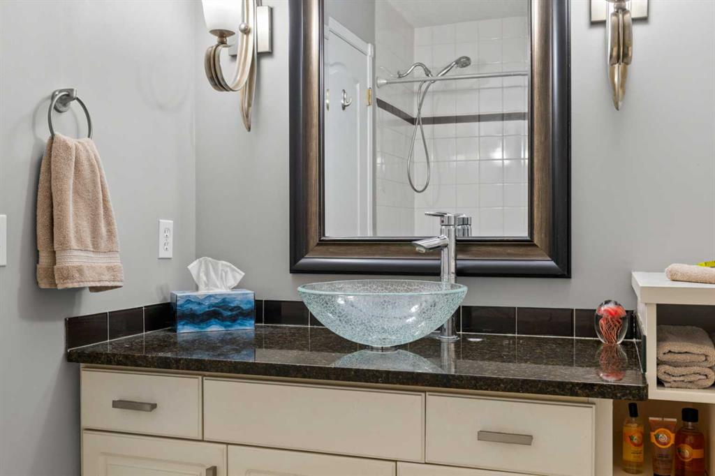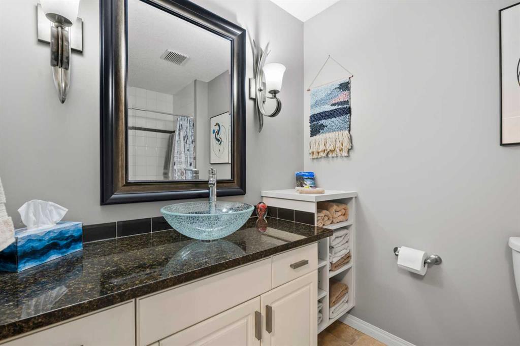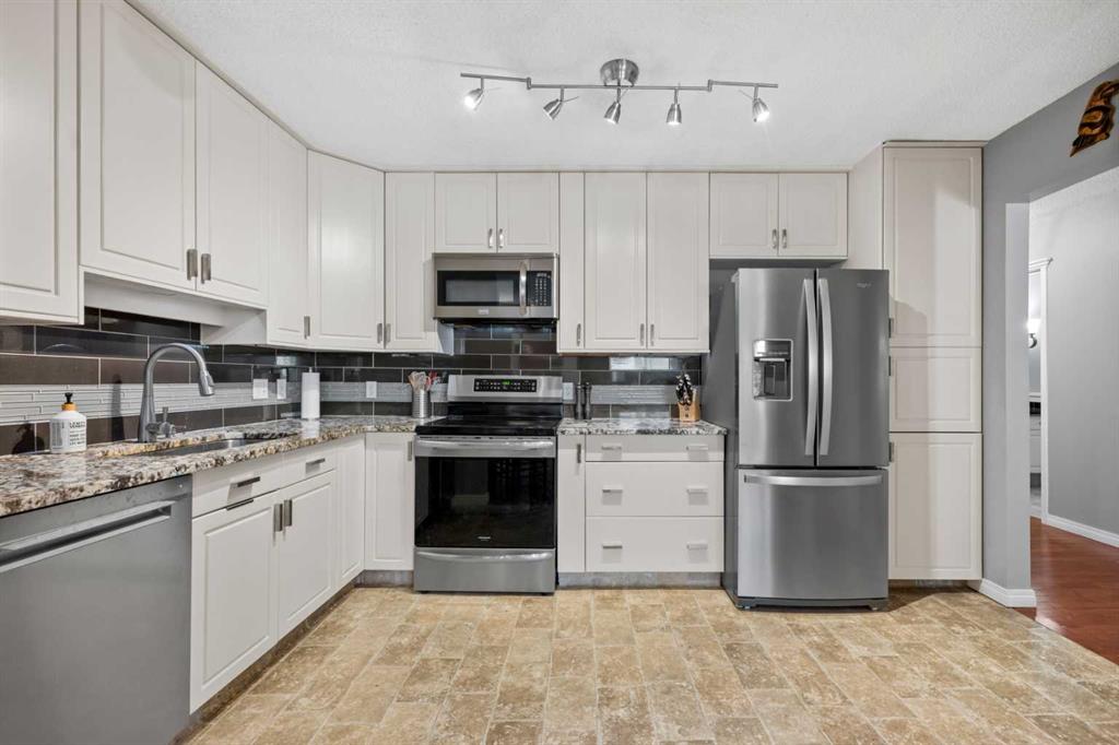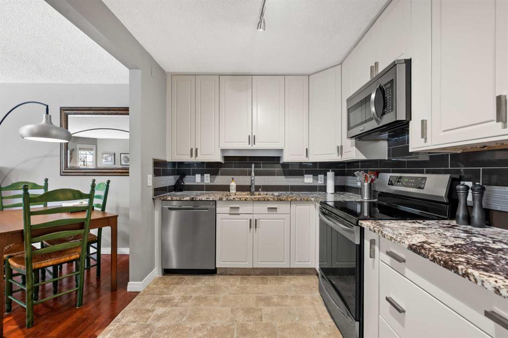 A truly exceptional opportunity for down sizers, right sizers, Villa seekers, or the adult seeking a quiet, convenient, established, and thoroughly upgraded place to call home. Pride of ownership on display throughout this 2 bedroom up bungalow with a double attached garage via the walk out lower level. Stepping in from the front door you enter the very large bright main living area featuring hardwood, multiple pot lights, a corner gas fireplace, a dramatic chandelier and bay window. The fully upgraded kitchen is an absolute dream with it’s granite counters, full height cupboards that feature a pull out spice cupboard above the pull out sheet pan cupboard beside the stove. There are pot drawers, a lower corner lazy Susan and opposing multi slide out drawer equipped pantries that provide unmatched storage and organization abilities. Stainless steel appliances complete this beautiful example that will leave any Chef wanting for nothing. The oversized Primary bedroom and the large secondary bedroom/office both feature hardwood floors and triple pane windows for quiet comfort. Both the 3 piece ensuite and 4 piece main bathrooms have been tastefully and functionally upgraded including dramatic new vanities with granite counters and increased storage. The main floor laundry and upgraded lighting throughout completes this beautiful space. The lower level includes a very large rec/gym/flex room, a 2 piece bath and your double attached garage that includes an outdoor pad for extra parking. This very well run established complex is close to Everything! Walking distance to Shopping, Restaurants, Medical clinics, gas stations, Mt Royal University, walking paths, Rutland Park Outdoor Rink and Community Hall. Its less than a 10 minute drive to Chinook mall, downtown, C-Train station, or simply head west on Glenmore/Stoney Trail to the mountains. You will love this home. This is a 40+ home that allows children 15 years old+