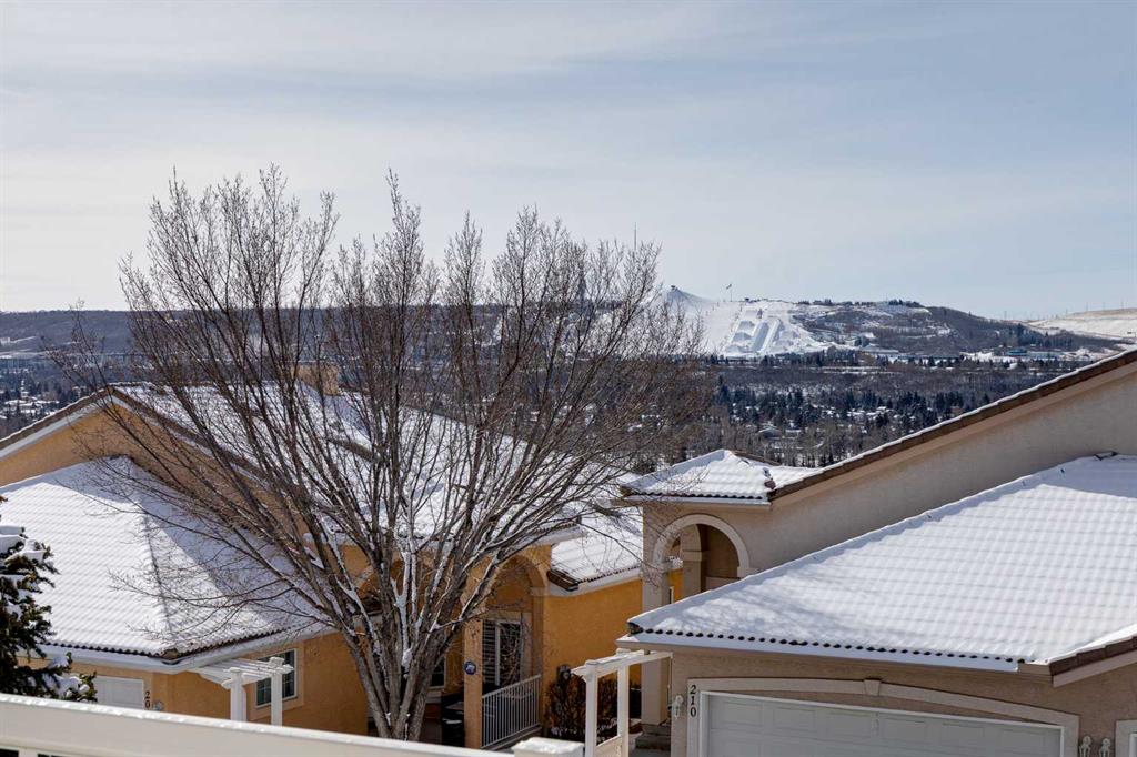 Located in the sought-after community of Scenic Acres, this detached bungalow is part of The Villas of Westchester Pointe, offering the convenience of condo living within a private, residential setting. Nestled along the ridge, the home enjoys an elevated position with expansive views toward the Bow River valley, Winsport, and downtown Calgary. With more than 2,600 sq. ft. of developed living space, a walk-out lower level, and a single attached garage, this property provides a comfortable and low-maintenance lifestyle. The main floor is designed for everyday living and easy entertaining. A welcoming entry leads to a versatile den, ideal for a home office or quiet sitting area. The open-concept kitchen, dining, and living areas are filled with natural light from large windows. The kitchen features white cabinetry, matching appliances, a corner pantry, and generous counter and storage space. The dining area accommodates larger gatherings and connects seamlessly to the living room, where a three-sided fireplace creates a shared focal point between the two spaces. From the living room, step onto the upper deck to enjoy sweeping views, including downtown in the distance, as well as the surrounding landscape. The primary bedroom is well proportioned and includes a walk-in closet and a four-piece ensuite. A two-piece powder room and a convenient main floor laundry room add to the functionality of this level. The walk-out basement extends the living space and is bright and welcoming, with direct access to a covered patio and grassy outdoor area. This level includes a large recreation room, a bedroom, a four-piece bathroom, and ample storage, offering flexibility for guests, hobbies, or additional living space. This pet-friendly complex allows dogs and cats with board approval. Monthly maintenance fees include grass cutting and snow removal, supporting a well-managed community with low condo fees. Scenic Acres is a well-established northwest neighbourhood known for its access to amenities, schools, and outdoor recreation. Community pathways connect directly to the Bow River system, with nearby access to Baker Park and Bowness Park. Crowfoot Crossing offers a wide range of shops, services, restaurants, the YMCA, and the Crowfoot Library, while the Crowfoot LRT station and Park and Ride provide convenient transit options. Schools, parks, an off-leash dog area, and the community centre are all close by. With easy access to Crowchild Trail and Stoney Trail, commuting across the city or heading west toward the Rocky Mountains is straightforward, and YYC airport is within a reasonable drive. Take advantage of your opportunity to see this incredible property in person, book your showing today! Be sure to check out the floor plans and 3D tour for a closer look before your visit.