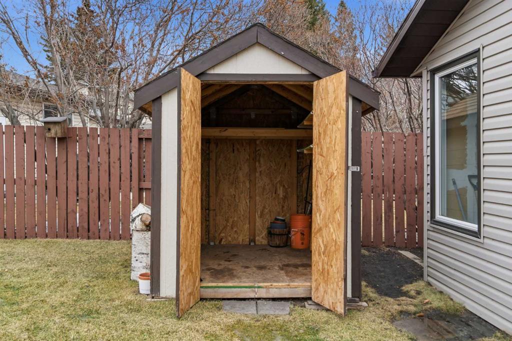 Welcome to this charming and well-maintained 960 sq ft bungalow located on a quiet, family-friendly crescent in the heart of Airdrie’s Summerhill. This inviting home has 3 bedrooms up, a kitchen, living room and a full bathroom. In the fully finished basement there is a flex room / craft room that has served as a 4th bedroom historically, laundry facilities and a second full bathroom. The large basement rec room is well suited for families in need of space for a gym or a cozy second living room and features a beautiful wood burning stove! Large windows on the main floor fill the home with natural light, complemented by comfortable laminate and carpet flooring throughout. Step outside to a spacious, fully fenced backyard featuring lush grass, a deck ideal for relaxing or entertaining, a large storage shed, and a double detached garage. Built in 1980 and thoughtfully cared for, this property is perfectly situated next to AE Bowers Elementary School and close to Nose Creek Park, scenic pathways, and nearby green spaces along the creek. With wide roads, a welcoming community feel, and excellent access to parks and amenities, this is an exceptional opportunity to own a wonderful family home in a sought-after location.