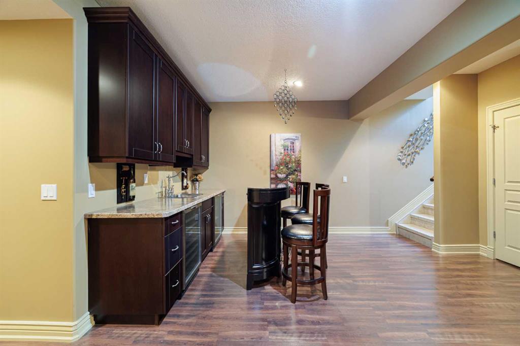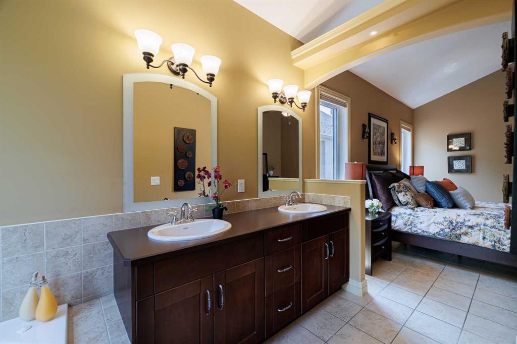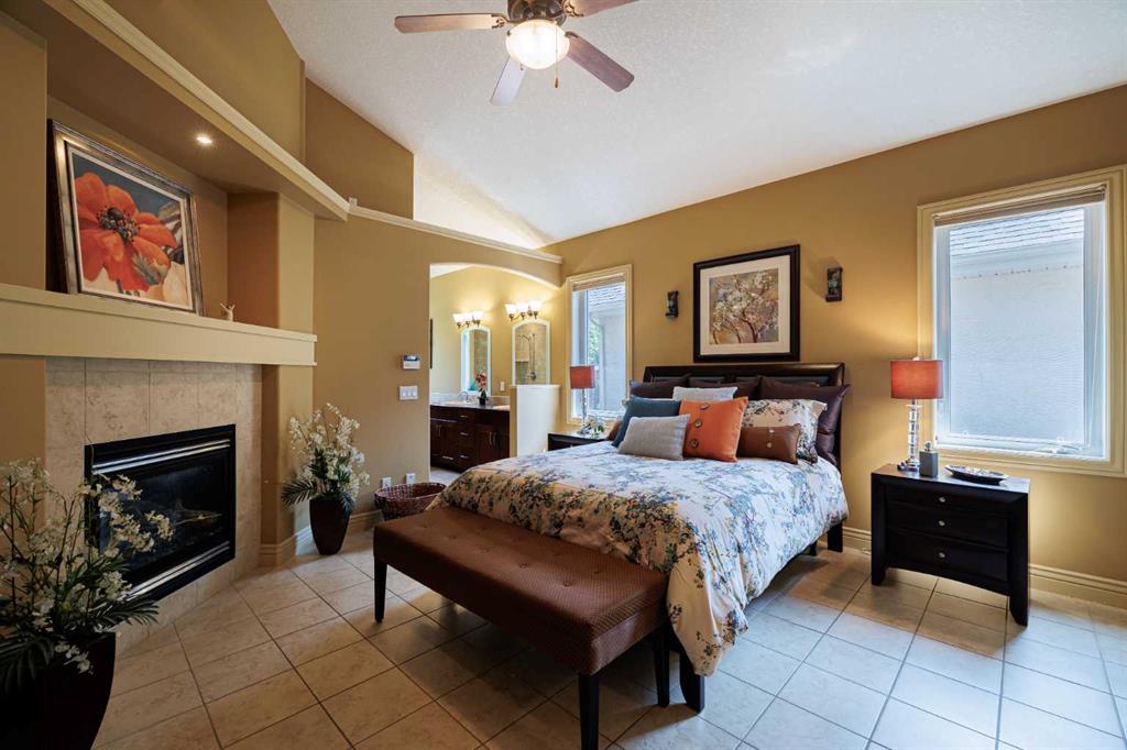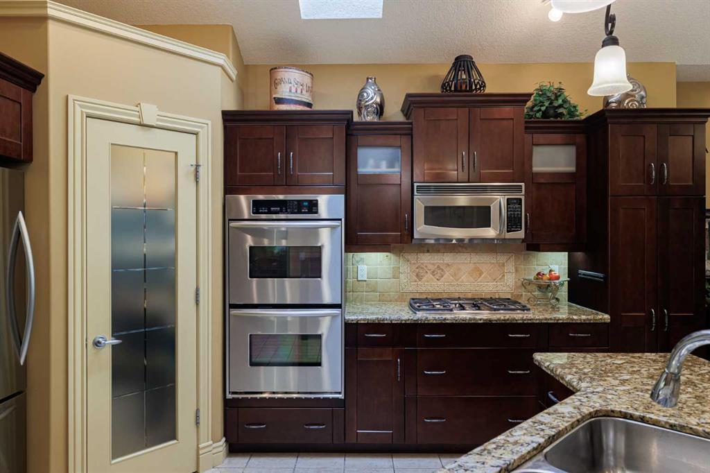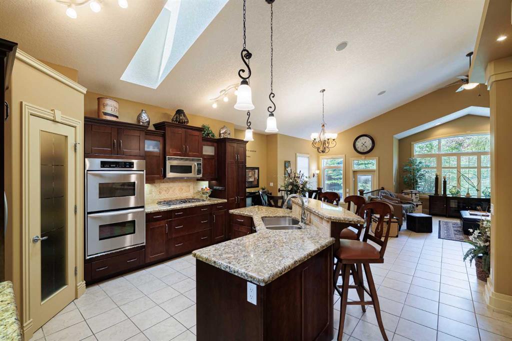 **OPEN HOUSE THIS SUNDAY 130-400PM** Welcome to this extraordinary luxury estate bungalow, an architectural gem perfectly positioned across from two breathtaking ravines with mountain views, quiet walking paths and in one of the area’s most prestigious and tranquil enclaves. Blending timeless elegance with contemporary sophistication, this impeccably crafted home offers refined single-level living with thoughtful design, premium finishes, and an unmatched connection to nature. From the moment you arrive, you’ll be captivated by the home’s striking curb appeal, oversized driveway, covered front porch and all set on a meticulously landscaped lot and framed by mature trees. Inside, soaring ceilings, tile flooring, and luxury finishing throughout set the tone for this exceptional residence. The main level features an expansive, light-filled great room with oversized windows showcasing picturesque and incredibly private backyard. The gourmet kitchen is a chef’s dream, complete with quality stainless appliances, double builtin ovens, custom cabinetry, a massive center island, generous countertops for prepping, and a dedicated pantry that adds both elegance and practicality. The open-concept design flows seamlessly into the dining area and great room, where a sleek 2 way gas fireplace anchors the space and creates an inviting ambiance for entertaining or quiet evenings at home. The main-floor flex room offers versatility to suit your lifestyle—ideal as a home office, library, or formal sitting room. The primary bedroom suite is a private sanctuary- a true retreat. A Cozy fireplace provides a special vibe, a large walk-in closet with custom built-ins, and a spa-inspired ensuite featuring a deep soaker tub, oversized glass shower, and dual vanities with granite counters. Downstairs, the fully developed lower level features two generously sized bedrooms, a full bath, and a massive family/media room with a custom built-in bar and plenty of room to relax or entertain. Radiant IN-FLOOR HEAT adds an extra layer of comfort, while oversized windows provide natural light and warmth. Step outside into your lush, private backyard oasis, landscaped impeccably, framed by mature trees for maximum privacy. Whether you’re enjoying morning coffee on the covered patio or hosting summer gatherings, this outdoor space is designed for beauty and serenity. Perfectly situated just steps from peaceful ravine pathways and scenic walking trails, yet close to all the amenities of upscale living, schools, transportation and much more. This bungalow offers central air for cool summer evenings and a rare opportunity to own a home that blends luxury, lifestyle, and location in perfect harmony.