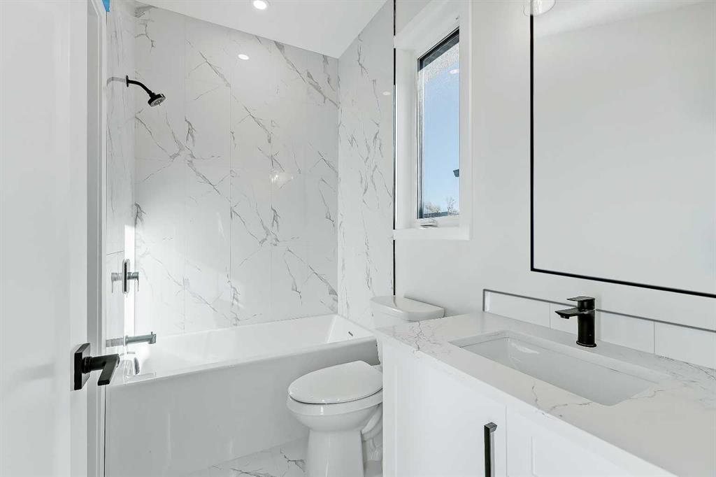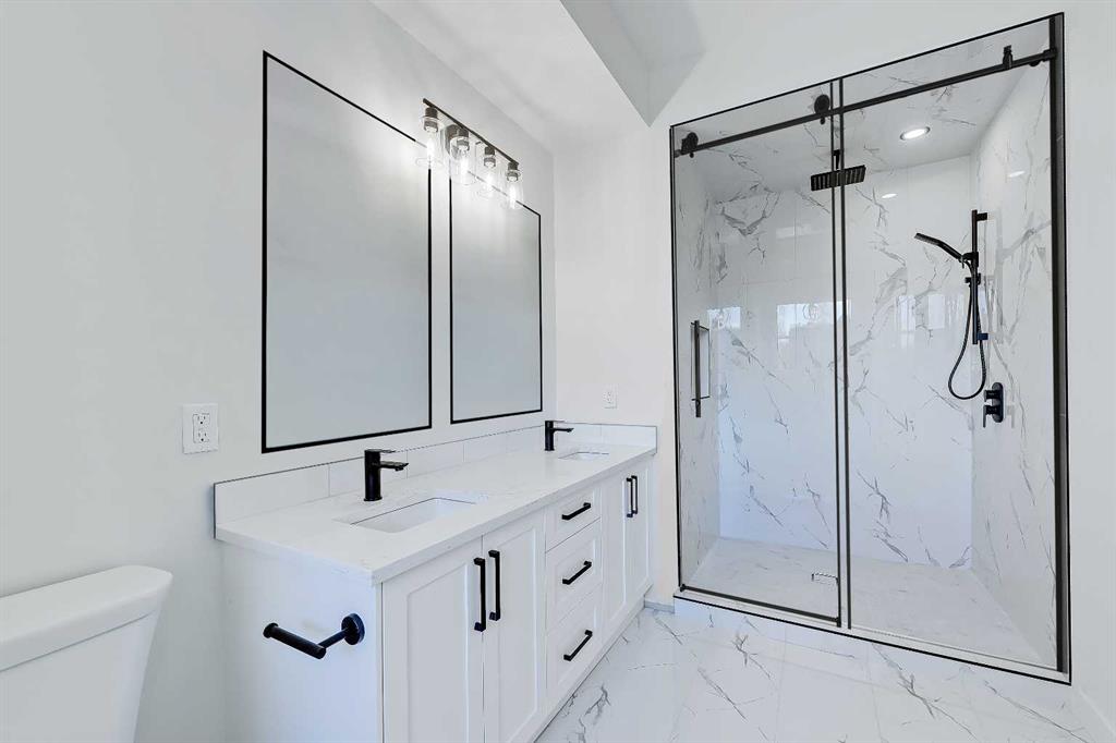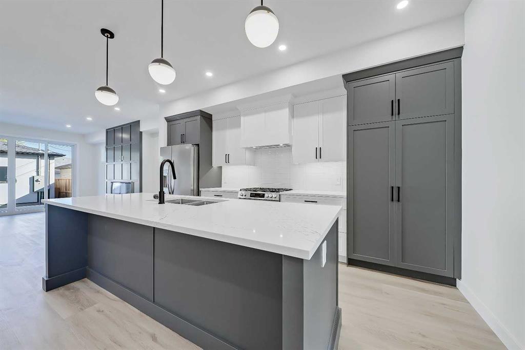 Home-cooked dinners and fresh beginnings. That’s exactly what you’ll find at this BRAND-NEW DETACHED INFILL IN HIGHLAND PARK, built with care and precision by AMSquared Custom Builders. The AMSquared approach is simple: if they do it right the first time, they’ll never need to address it again. Building across all areas of Southern Alberta, their construction experience is recognized for its superior quality, craftsmanship, and customer satisfaction—something to keep in mind when shopping around compared to other new infill builders! MOVE-IN READY AND DESIGNED WITH EVERYDAY LIVING IN MIND, a concrete wraparound walkway leads you to the clean, modern exterior. Step inside and let the open-concept main floor welcome you in. Luxury vinyl plank flooring extends throughout. The front dining area, framed by an oversized window overlooking the quiet street, sets the stage for cozy dinners and festive gatherings. Just beyond, the central kitchen commands attention with sleek dual-tone cabinetry, quartz countertops, a tiled backsplash, and stainless steel appliances, including a 5-burner gas stove. The oversized island doubles as a breakfast bar, while a pantry closet just off the kitchen keeps everything neatly tucked away. There’s even enough room for a breakfast table, illuminated by an oversized main floor window if you decide to convert the front room into an additional living or den area. In the rear living room, comfort meets design with an electric fireplace framed by a panelled accent wall. Dual sliding glass doors open to your private backyard retreat, where a large deck and grassy area offer space for year-round enjoyment. Tucked behind the living room, a mudroom connects to the 22’2” x 20’2” double detached garage via a concrete walkway. A convenient 2pc powder room completes the main level. Upstairs, plush carpeting adds warmth while oversized windows in every room fill the space with natural light throughout. The primary suite is a peaceful retreat featuring a walk-in closet with custom organizers and a spa-inspired 5pc ensuite with heated tile floors, dual vanities, a soaker tub, and a floor-to-ceiling tiled walk-in shower. Two additional bedrooms share a Jack-and-Jill bathroom, while the laundry room offers quartz counters, cabinetry, a folding surface, storage space behind the door, and a large skylight. The fully finished basement expands your living space with a large rec room, fourth bedroom, and 4pc bathroom, plus extra storage space under the stairs. Nestled on a peaceful street in Highland Park, this home offers a unique mix of city living and community charm. It is conveniently close to creeks, parks, and playgrounds. During weekends, enjoy a walk through nearby Confederation Park, relax with a coffee at a local café, or grab a Blizzard from Dairy Queen on your way! Families will appreciate the proximity to local schools and the Highland Park Community Centre, all within easy walking distance.