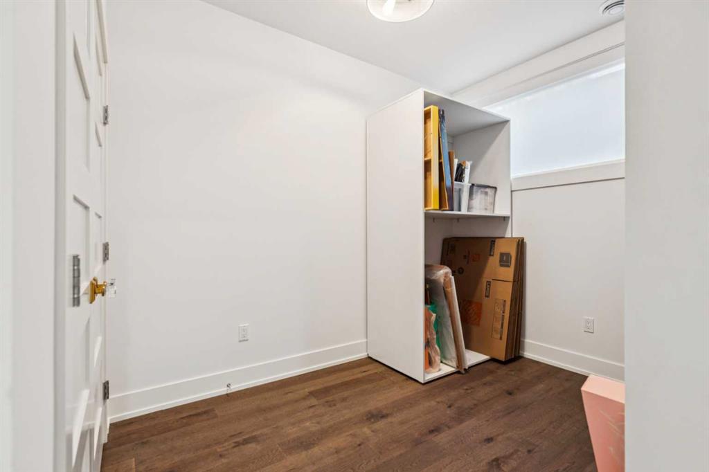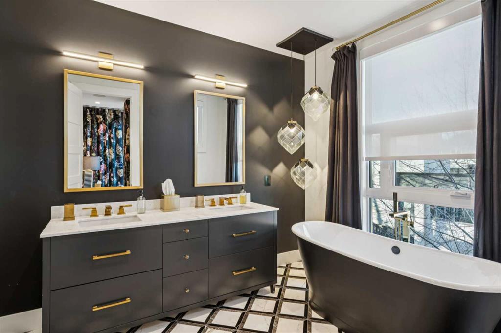 Exceptionally high-quality home in sought-after Parkhill, just a few doors from the Ridge Park with access to the Elbow River pathway system. Enjoy a walkable lifestyle minutes from the vibrant 4th Street Village, offering an endless array of shops, dining, and services, along with proximity to excellent schools. This stunning contemporary residence showcases impeccable design and craftsmanship with architecture by Marvin DeJong and an incredible array of upgrades. Brick, metal, and stucco create a striking curb appeal punctuated with a custom 2.5” solid oak and glass front door. 3,096 sq ft of developed living space including 4 bedrooms and 3.5 bathrooms. The totally open-concept main floor features high ceilings, exceptional natural light from the oversized front and rear windows and custom herringbone hardwood floors. The living room is anchored by a custom-paneled fireplace with “frame” television and soft floor-to-ceiling sheers. Truly incredible chef’s kitchen with extensive custom cabinetry, quartzite counters and a massive “waterfall” island with seating. Top appliances include: a La Cornue gas stove, Subzero fridge plus 2 fridge drawers, 2 Subzero freezer drawers, 2 Subzero wine fridges, Wolf Induction burner, 2 dishwashers and a custom fabricated quartzite sink. The generous dining area with designer lighting and built-in storage overlooks the rear yard . A mudroom with heated floor and excellent storage and a discreet, elegant powder room complete the main level. Striking staircase with glass wall and solid wood treads leads to the upper floors…no carpet in the home. The primary suite features blackout drapery, wall-mounted TV and a well-organized walk-in closet. The spa-inspired ensuite showcases heated custom marble flooring, designer lighting, Kateryn cast iron soaking tub, zero-threshold shower with steam, water closet with Japanese bidet toilet and a large double vanity with honed marble counter and Restoration Hardware fixtures. The balance of the second level includes two bright bedrooms (one currently used as a dressing room), a spacious house bath and a walk-in laundry room with sink and storage. The top-floor holds both a large studio space with amazing light quality and an office area with access out to a large and private terrace. The fully finished lower level offers heated hardwood floors, a media space, games room, work station, bedroom and a full bath. Outdoor living is equally impressive with a front terrace with perennial-rose garden and a sunny west-facing and low-maintenance back yard with multiple patios. Additional highlights include a smart home system that controls Lutron lighting, temperature and security, a sprinkler system and Gemstone exterior lighting. The fully finished and heated double garage has 2 EV chargers and enjoys a paved alley. This exceptional property must be seen to be appreciated.