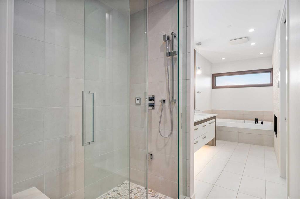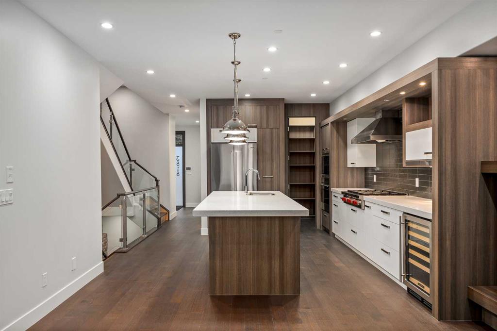 This, renovated, better than new modern home is located in desirable, prestige and secure SW community of Altadore. Contemporary 3 storey , featuring hardwood throughout 3 levels, cool brick wall, 9’ceilings, 8′ solid core doors, metal with glass railings, 3 fireplaces, in floor heat and much more. On the main floor you will find open kitchen with Wolf appliances, walk-in-pantry and custom cabinetry, living room with cozy fireplace and sliding door to a spacious patio. Convenient front of the house main floor office. On the second level you will enjoy luxurious master retreat with double side fireplace, tub, steam shower and large walking closet. Convenient laundry room and two additional bedrooms. One level up loft, with 3 skylights, full bath, bar and 2 decks with views and fireplace. Basement is fully finished with bedroom, full bath and huge recreation/ home theatre room and storage room. Air conditioning, under ground sprinklers, insulated garage. Home shows amazing. Just move in and enjoy the Summer!