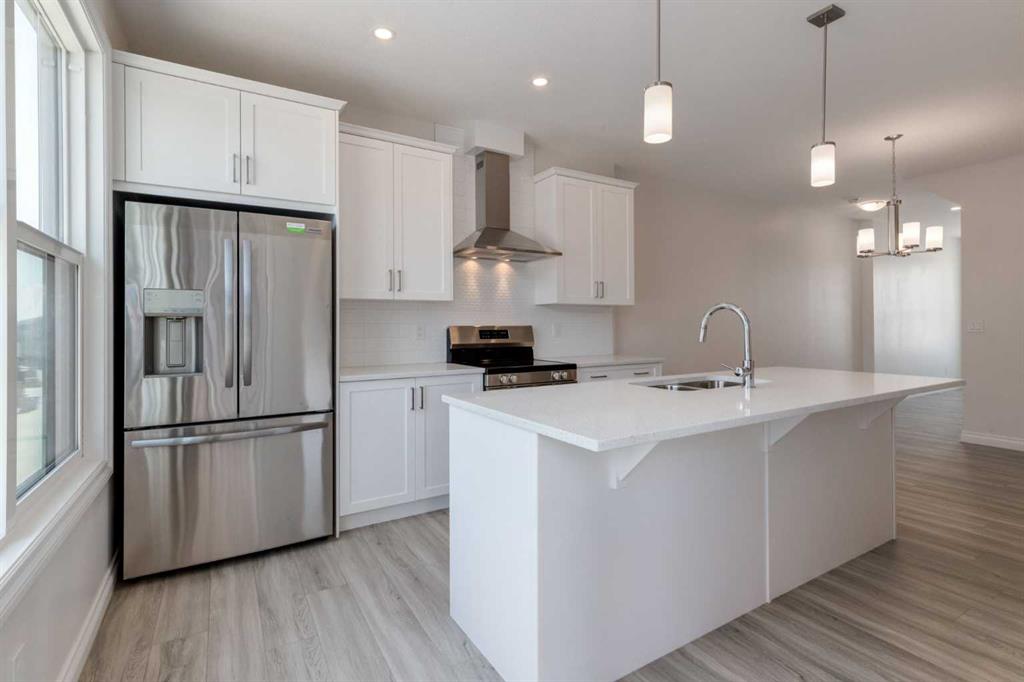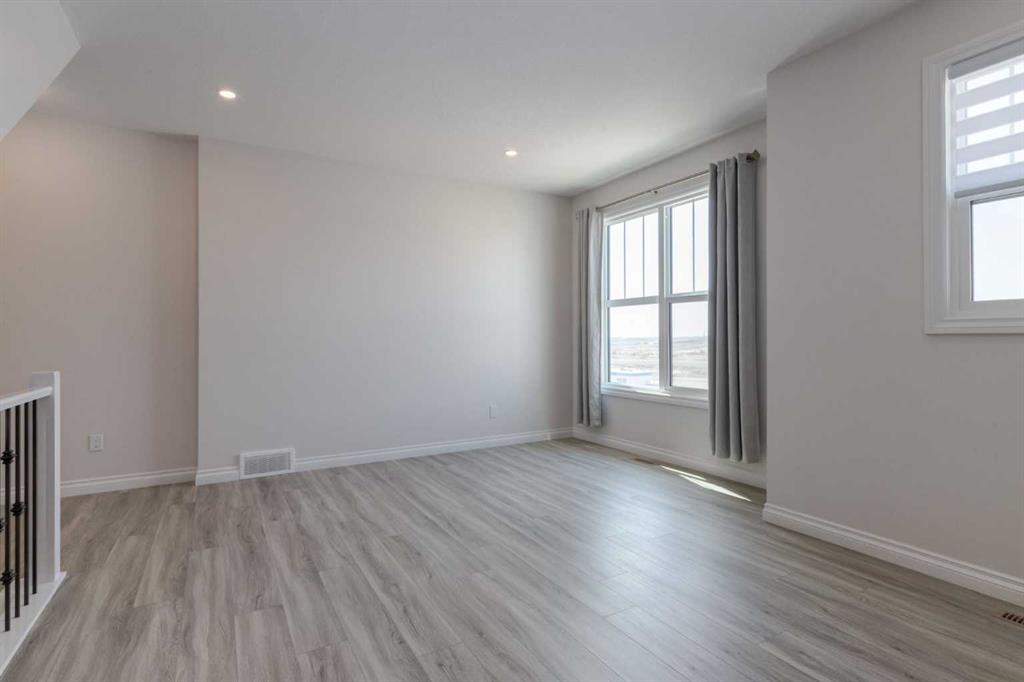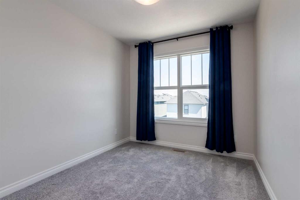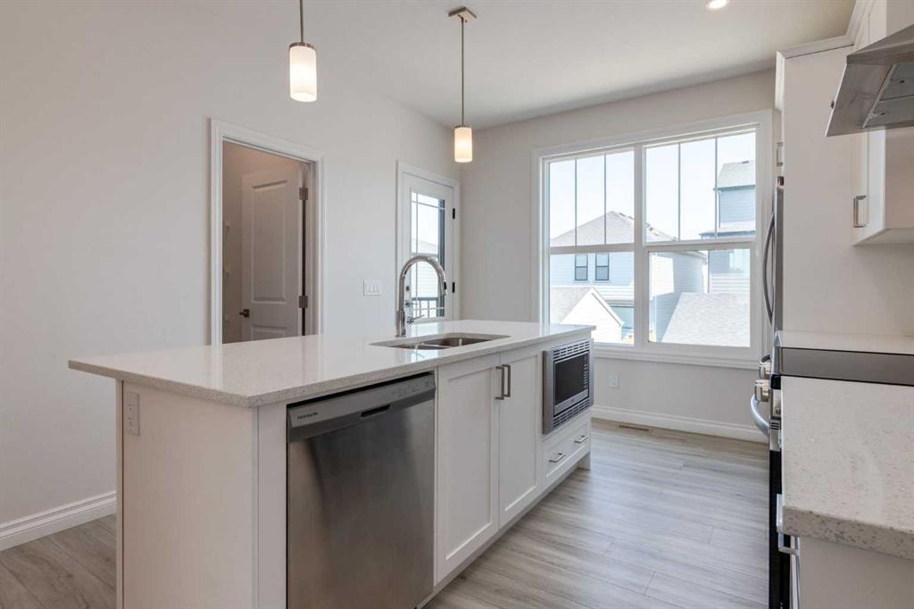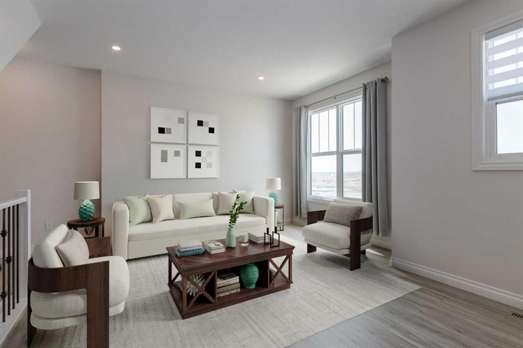 Welcome to this upscale, 2024-built townhome with no condo fees in the vibrant new community of Alpine Park—a must-see neighbourhood on Calgary’s southwest edge. Enjoy quick access to Stoney Trail and the nearby Taza Development, combining convenience with modern suburban living. The main floor features a versatile bedroom or private home office, perfect for remote work or guests. You’ll also find direct access to the basement and double attached rear garage. The second level boasts an open-concept design with a bright, spacious living room and a timeless white kitchen featuring brand new stainless steel appliances, quartz countertops, 9-ft ceilings, a walk-in pantry, large island, and durable luxury vinyl plank flooring throughout. Upstairs, there are three more bedrooms, a convenient full laundry room, including a sunlit primary suite with a large front window and a double vanity ensuite. And yes—window coverings are already installed and included. Just in time for you to move in and enjoy the summer in your new home.