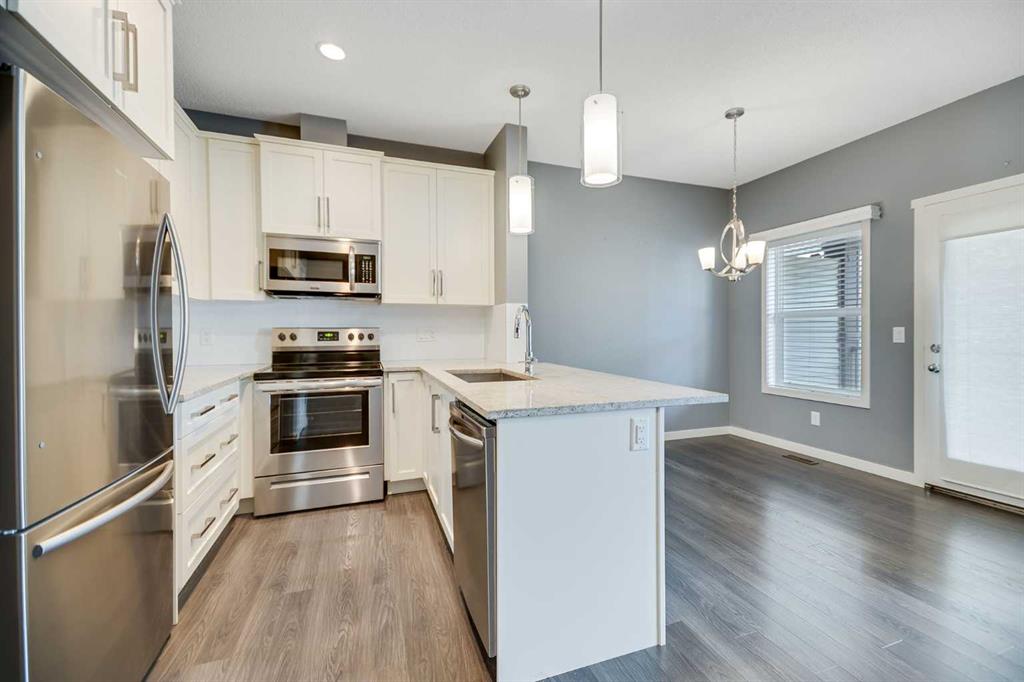 Enjoy sunsets on the covered, west-facing patio, overlooking a treed green space—a peaceful backdrop for morning coffee or golden-hour unwinds. The front single attached garage connects to the main level with extra storage, plus a garage door opener (Sept 2022). The unit is located conveniently near visitor parking for guests, or apply on the waitlist for additional parking. This condo allows for pets with board approval. Steps from community ponds, playgrounds, and pathways—including Wildflower Pond—and close to New Brighton Athletic Park; minutes to the Brookfield Residential YMCA at Seton and the South Health Campus. Quick access to 130 Ave SE/South Trail Crossing and Seton shopping; commuter-friendly via Stoney Trail, Deerfoot Trail, and 52 St SE; nearby schools include Copperfield School (CBE K–5), St. Isabella (CCSD K–9), and Joanne Cardinal-Schubert High School (CBE, Seton). Book your showing today!