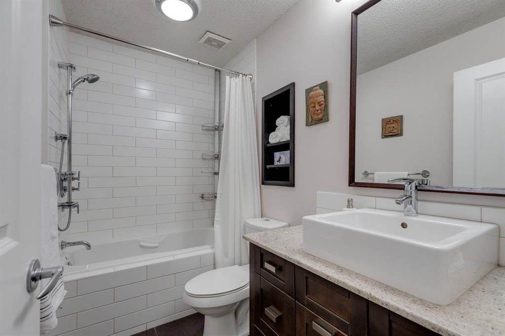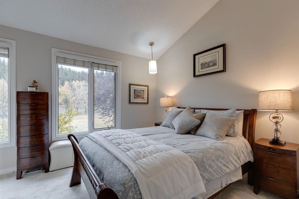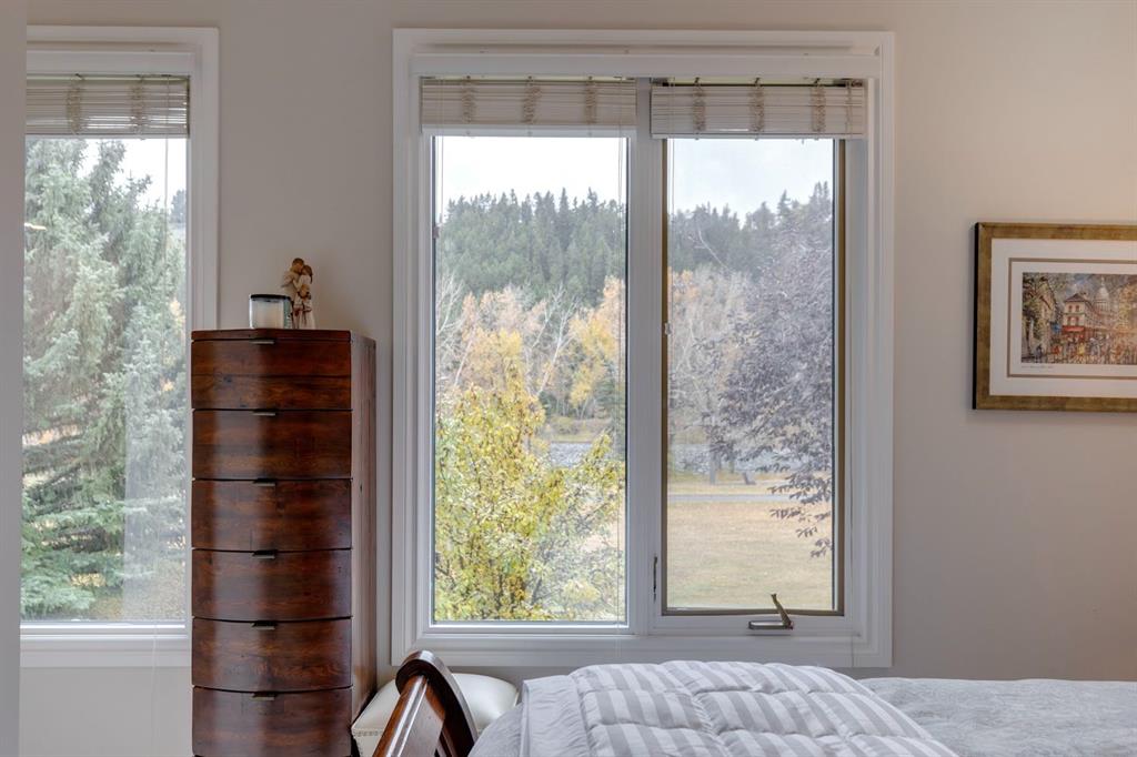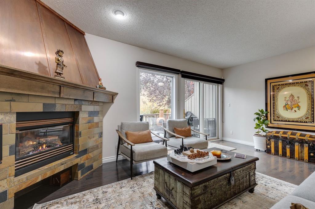 Nestled along the Bow River, this elegantly reimagined 3-bed, 2.5-bath townhome in prestigious Point McKay seamlessly blends modern comfort with natural serenity. Rare and highly sought after, these park-front units offer an unparalleled connection to the river pathway, Edworthy Park, The Riverside Sport Club, racquet courts, and beloved local cafés and restaurants. The sophisticated four-level split design features soaring ceilings, expansive park-facing windows, and a sleek gas fireplace with a custom copper mantle. The renovated kitchen impresses with granite counters, ceiling-height cabinetry, stainless steel appliances, a spacious pantry and laundry room, and heated tile floors extending through the front hall. Originally transformed in a substantial 2008 renovation, the home has since enjoyed further updates in 2022, including a full repaint, new ensuite, carpet, custom wardrobes, new dishwasher, gas range, and hot water tank (2024). Upstairs, the tranquil primary retreat offers vaulted ceilings, a cozy reading nook, walk-in closet, and peaceful river views. Two additional bedrooms and an updated bath complete the upper level. The finished lower level provides a versatile entertainment space ideal for music or movies, while the attached garage ensures year-round convenience. Outdoors, a private west-facing composite patio is surrounded by mature trees and showcases on of the best views in the NW—perfect for enjoying evening light and quiet moments. With quick access to downtown, Foothills Hospital, Market Mall, the University of Calgary, and the mountains, this rare Point McKay offering delivers the ideal balance of tranquility, sophistication, and connectivity.