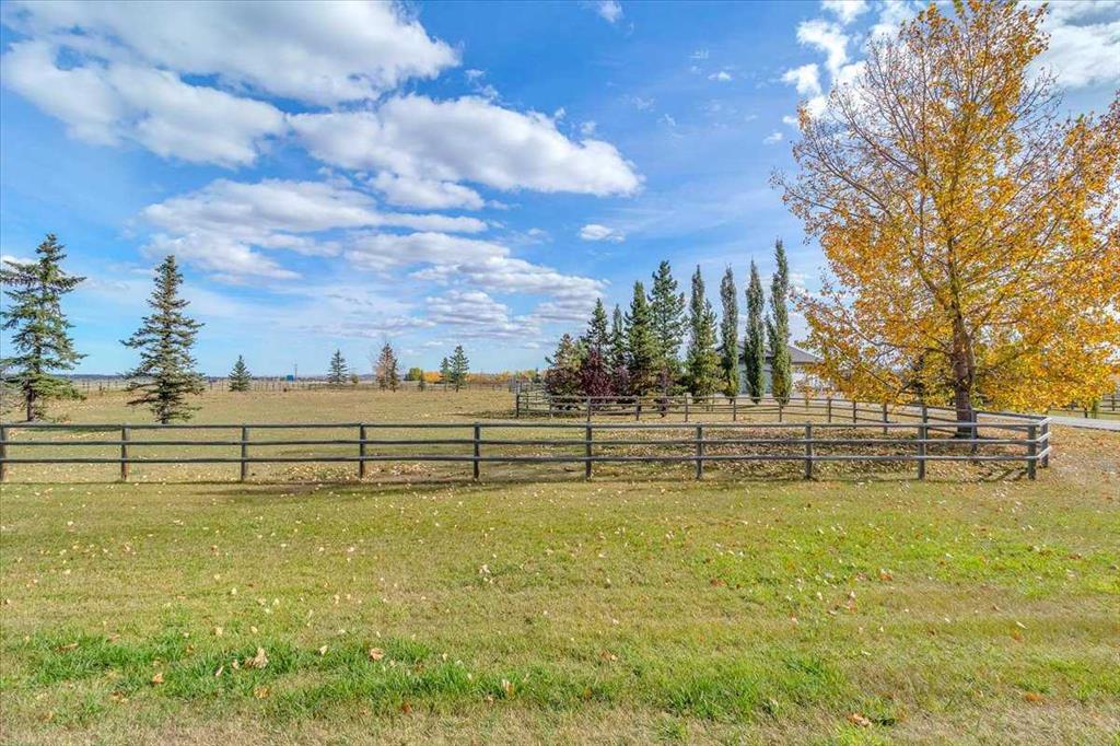 Step right into a world where rural serenity meets urban accessibility-just minutes to Okotoks! Nestled in a picturesque sub-division with southwest views including mountain views, this beautiful acreage is a haven for horse lovers and offers 4.25 acres which are fenced and cross fenced with post and rail fencing giving it a unique charm. This perfect setting features a walk-out bungalow with over 2500 sqft of developed living space in an open floorplan, vaulted ceilings, 2 beds up and 2 down, air conditioning and paved drive right to the front step. Along with a barn that comes with 2 stalls, a tack room, horse shelters and additional storage, this beautiful equestrian community is bordered by 8 acres of reserve and riding trails including 10m wide riding trails throughout the subdivision making this a dream location for equestrians and those looking for additional space. Inside, this welcoming home offers an open concept layout with vaulted ceilings, skylights that flood the home with natural light, a cozy fireplace and doors that lead out to the south facing deck from which to enjoy the breathtaking views of the foothills. The open kitchen, dining and living room are great for entertaining and the master bedroom with 5 pc ensuite and extra bedroom and 4 pc bath complete the main floor living space. You will appreciate the curved staircase that leads down into the bright walk out basement, featuring two bedrooms, 4 pc bath, in floor heating, a large family room with gas fireplace and a functional wet bar makes for another great space to entertain your family and friends. Outside, a private patio off the walkout basement provides a serene retreat, while on the west side you will find another extra patio area where you can soak in the sun and enjoy the mountains. The charming firepit area adds warmth and character to the outside space. You will find the perfect blend of outdoor living while close to Okotoks in this unique and beautiful space! (Private and public school buses come to the door)