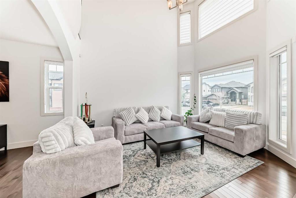 This is a wonderful opportunity to own a spacious home in the highly sought-after Kinniburgh community in Chestermere. With over 4,600+ sq ft of living space, a walkout basement, and a warm, inviting layout, this house is ready to become your family’s haven. From the moment one steps through the foyer, the home reveals its character. An open, bright ambiance tempered by a gracious 9-foot ceiling and an open-concept layout that softly guides the eye toward generous windows, allowing abundant natural light to wash the interior. The main level elegantly balances reception spaces with everyday livability. A den offers a quiet retreat for study or work, while a half-bath serves guests with discreet practicality. The heart of the home lies in the expansive kitchen, where a substantial island anchors the space, storage is abundant, and quartz countertops gleam beneath a stylish backsplash and contemporary cabinetry. The living and dining areas flow seamlessly from the kitchen, forming an ideal stage for gatherings that feel effortless and intimate in equal measure.