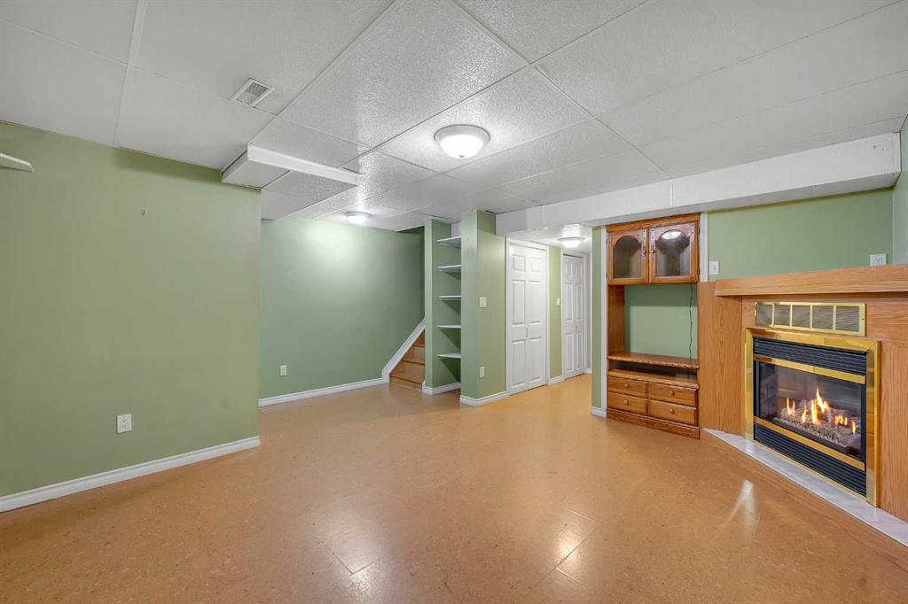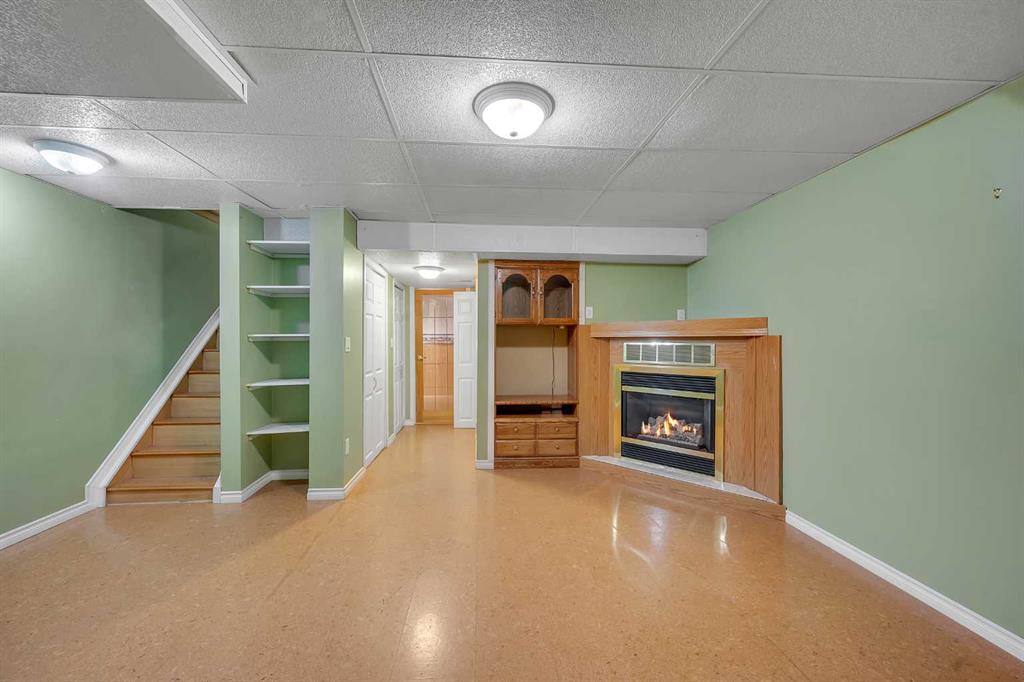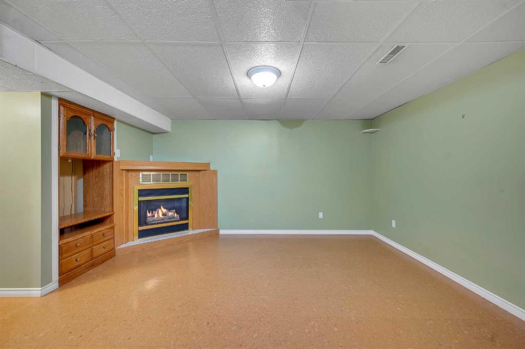 Recent updates include a newer asphalt shingle roof (2023), central air conditioning, and newer modern stainless steel kitchen appliance package. The main floor features 9-foot ceilings, large windows, and a cozy living room with a central gas fireplace. The kitchen is fitted with oak cabinetry and flows into a bright dining nook with patio doors that lead to a west-facing, fully fenced, and landscaped backyard—ideal for outdoor enjoyment. Upstairs, the primary bedroom includes a walk-in closet and a 3-piece ensuite. A second spacious bedroom and a 4-piece main bathroom complete the upper level. The fully finished basement offers a large family/games room with a second gas fireplace, an additional bedroom or den, and generous storage space. The oversized double detached garage is fully insulated and heated with its own gas furnace, providing excellent utility year-round. Additional features include a central vacuum system and a natural gas BBQ hookup. This home offers great potential in a family-friendly neighborhood.