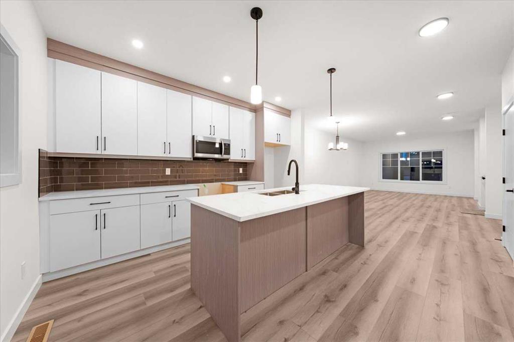 Welcome to 39 Baysprings Terrace – Brand New Townhomes by Luxury Custom Builders! Experience the perfect blend of modern comfort and timeless design in these thoughtfully crafted, brand-new townhomes. Built with quality and functionality in mind, these homes offer spacious layouts ideal for today’s lifestyle.Step inside to an open-concept main floor featuring stylish luxury vinyl plank flooring throughout. The heart of the home is the chef-inspired kitchen, showcasing a large quartz island, stainless steel appliances, and abundant cabinetry—perfect for both everyday living and entertaining. A convenient half-bath completes the main level. Upstairs, you’ll find three generously sized bedrooms, each with walk-in closets and custom built-ins. The primary suite is designed to impress with space for a king-size bed and a luxurious 5-piece ensuite that includes dual sinks, a deep soaker tub, and a separate walk-in shower. A dedicated laundry area on this level adds everyday convenience. The unfinished basement offers roughed-in plumbing and is ready for your future development. Outside, enjoy a professionally landscaped and fully fenced west-facing backyard with access to a double detached garage. This self-managed complex is beautifully maintained with low condo fees and a strong sense of community. Located near walking paths, the waterfront, and year-round recreation like paddle-boarding in summer and skating in winter. Families will love the proximity to parks, playgrounds, Nose Creek School (K–4), shopping, dining, and essential services. Whether you’re seeking a family-friendly home or a smart investment, there’s a layout here to fit your lifestyle. Check out the virtual link.