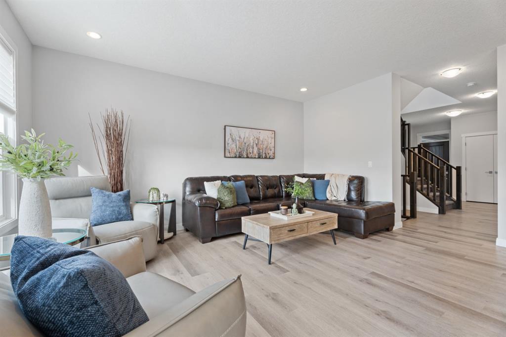 **Open House Sat Nov 8, 1-3pm** & Price Improvement! Discover the charm of valley living in Cranston’s highly sought after Riverstone community. With direct access to Fish Creek Park, the Bow River, endless walking paths, and tranquil surroundings, this elevated lifestyle is truly unique to Calgary. Backing onto a green space and pathway with quick access to a park and playground, this fully developed family home is designed for comfort and connection. Step into the welcoming front foyer with high ceilings and abundant natural light. The main level features durable vinyl plank flooring in neutral tones, creating a modern and inviting feel throughout. The kitchen is a showstopper, with a designer tile backsplash, statement hood fan, gas cooktop, built in oven and microwave, two toned quartz countertops, and upgraded cabinetry. A spacious walkthrough pantry with room for a second fridge or freezer connects to the mudroom, offering practical access to the garage and a conveniently located powder room. Upstairs, the primary suite is a private retreat complete with a lovely ensuite featuring a soaker tub, dual sinks, a walk in tiled shower, and a generous walk in closet. Two additional bedrooms, a full bathroom, upper laundry, and a bonus room round out the second floor. The fully finished basement extends the living space with a large rec room, fourth bedroom, full bathroom, and plenty of storage. Central A/C ensures year round comfort. Enjoy the outdoors in your large backyard with a spacious deck, large storage shed and backing directly onto a pathway that leads to the nearby playground. The community is designed to take advantage of the natural topography: ridges, escarpments, river valley- offering views and green space throughout. Check out the virtual tour!