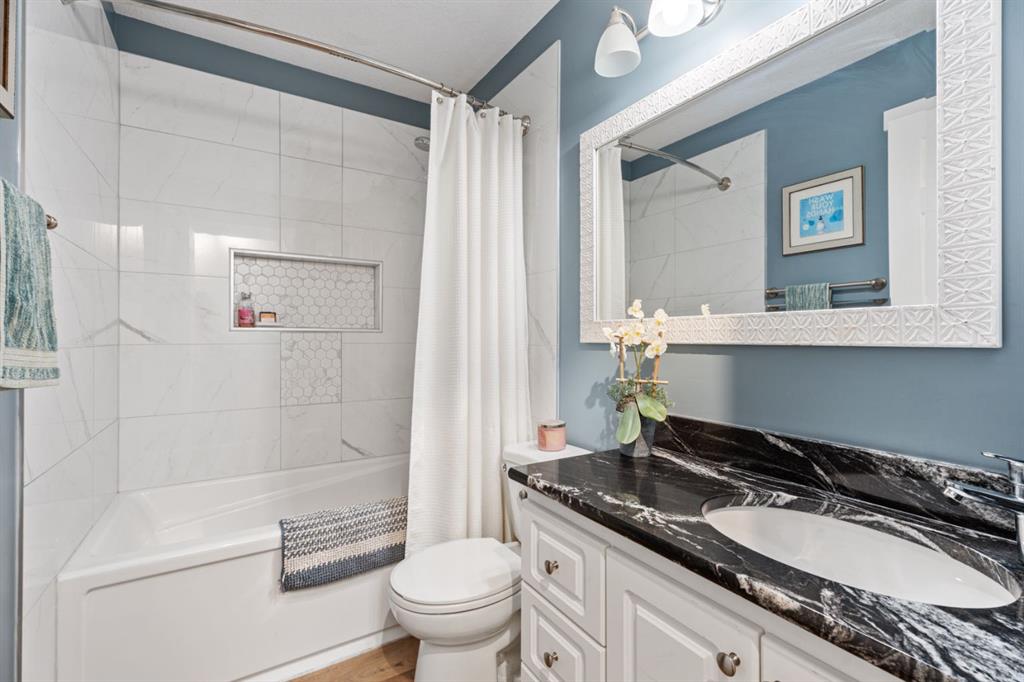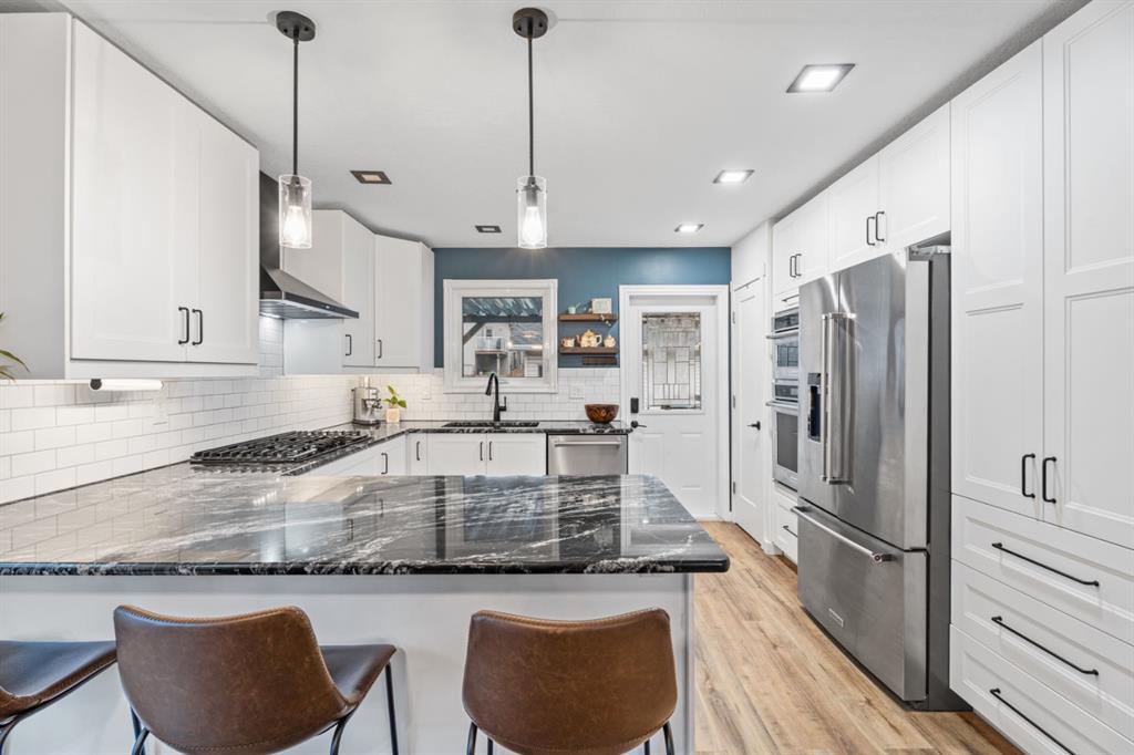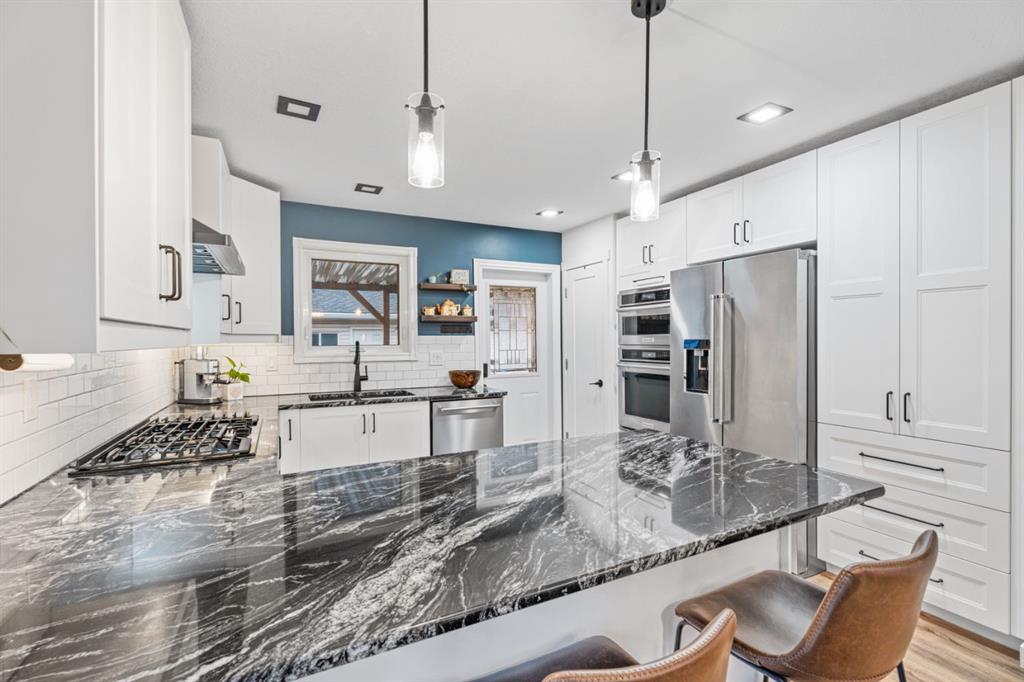 **Open House, Sun. Nov. 23, 1-3pm** This fully developed home checks all the boxes, offering upgrades, functional living spaces, and a location you’ll love. Thoughtfully renovated in sought after Sheep River Ridge, just steps to the stunning river valley! The main level features durable vinyl flooring throughout and is brightened by newer triple pane windows and doors. The L shaped kitchen with island is a standout with granite countertops, stainless steel appliances, a gas cooktop with hood fan, subway tile backsplash, ample storage, and a spacious dining area. On the main level you’ll find three comfortable bedrooms, including a primary suite complete with a tiled shower. Both upper bathrooms feature granite counters for a cohesive, upgraded feel. The fully finished basement adds even more versatility with a large rec room, multi purpose room, a third full bathroom with a tiled shower, heated floors and laundry. Additionally there is two generous bedrooms, ideal for guests, teens, or extended family. Plenty of storage throughout the home keeps everything organized. Enjoy year round comfort with air conditioning, and relax outdoors on the covered back deck that’s perfect for all seasons. The large, landscaped yard offers room to play, garden, or unwind. The oversized heated detached garage plus RV parking is every man’s dream with plenty of room to tinker. Located in a quiet, family friendly community, you’re walking distance to parks, playgrounds, the river valley pathway system, shopping, and Big Rock School. This home is perfectly suited for families, downsizers, or anyone seeking comfortable main level living with room to grow. Check out the virtual tour!