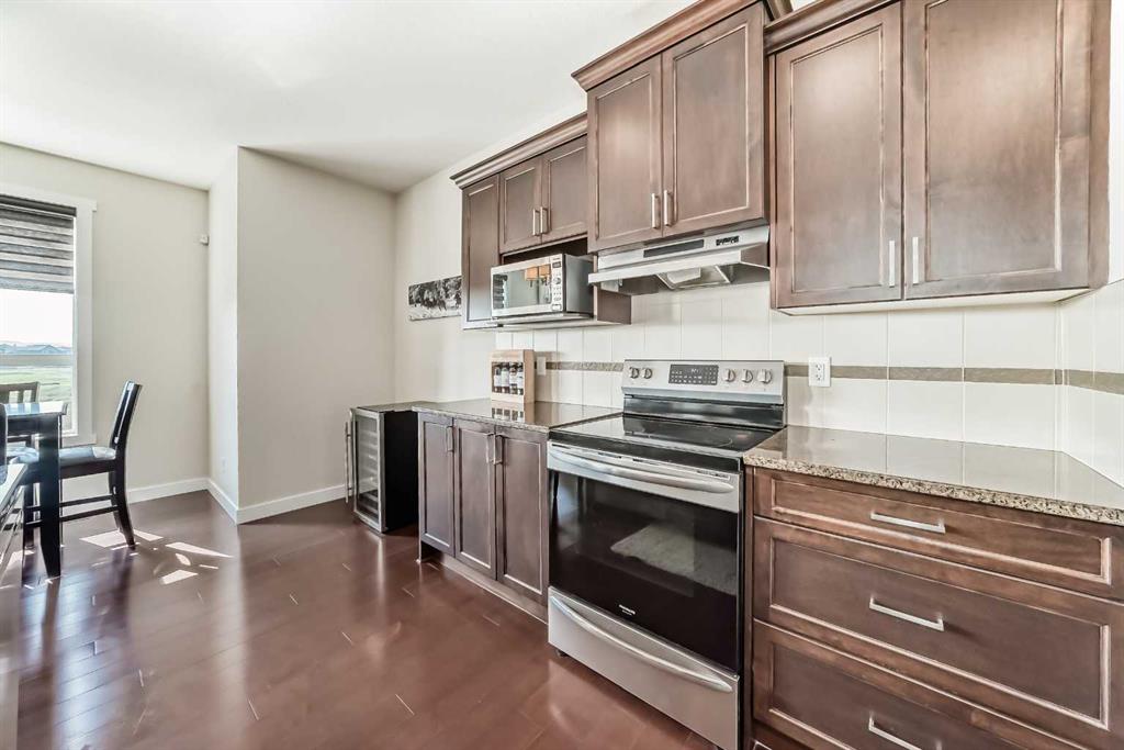 Inside, you’ll find a bright, open main floor that’s perfect for everyday living and entertaining. Gleaming hardwood floors, 9’ ceilings, and a cozy gas fireplace make the living area warm and inviting. The kitchen offers plenty of space to cook and gather, with granite countertops, lots of cupboards, and a large island that’s perfect for snacks, homework, or catching up over coffee. The sunny dining nook looks out toward the reserve, and the adjoining patio is ideal for morning coffees or summer BBQs.