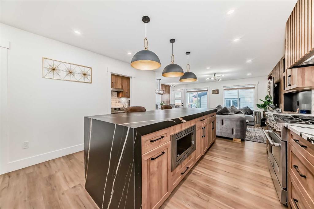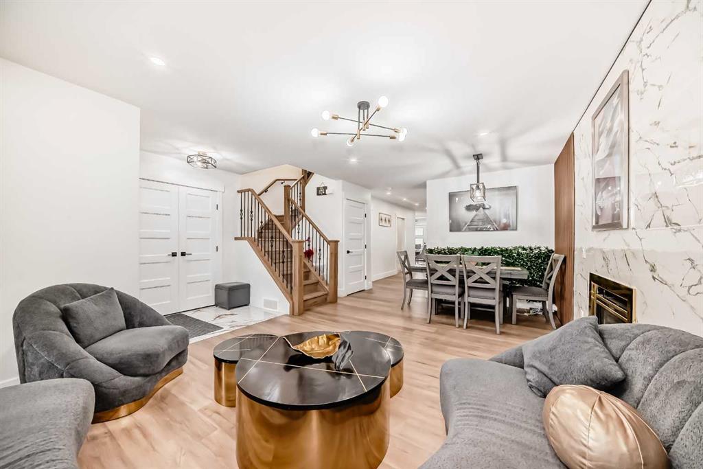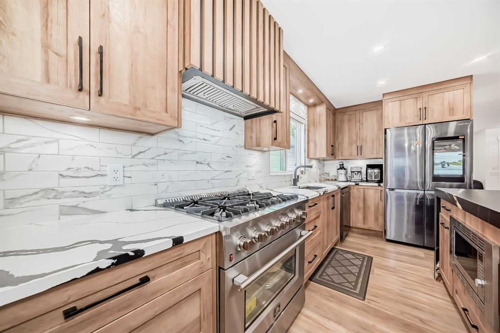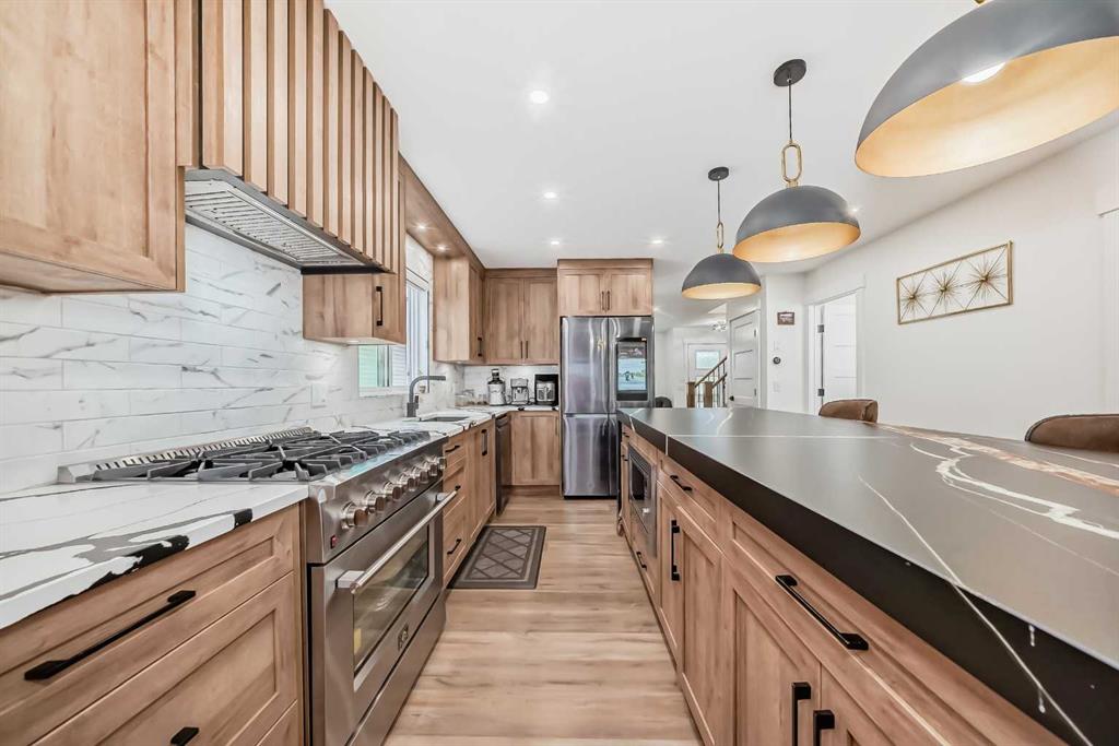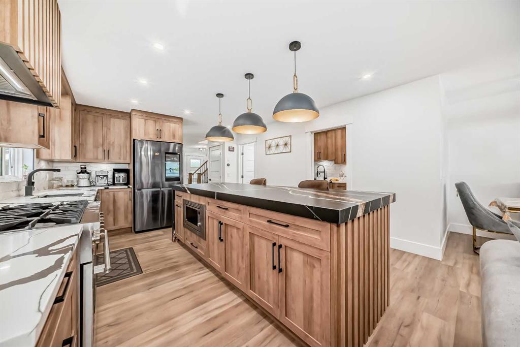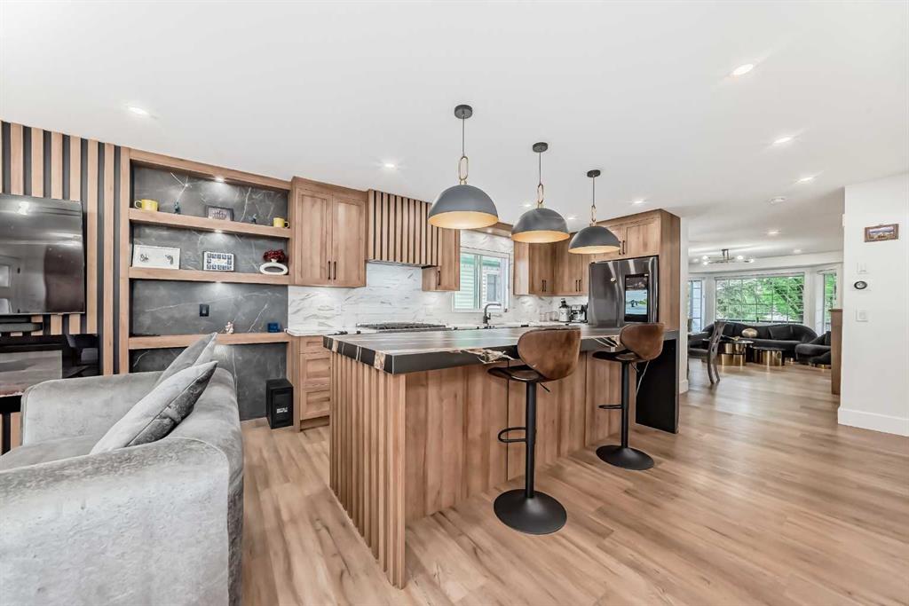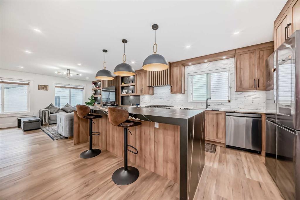 ONE-OF-A-KIND, MAGAZINE-WORTHY HOME WITH HIGH-END LUXURIOUS UPGRADES. This beautiful home will definitely SURPRISE YOU WITH THE AMOUNT OF RENOVATIONS, USAGE OF SPACE AND THE REMARKABLE DESIGN. Welcome to this fully upgraded luxury home where modern elegance meets functional design. Spanning over 2,000 sq ft plus a fully finished basement is a perfect blend of style, comfort, and functionality, ideal for families who want to experience luxury while staying in the well established area close to all amenities. This stunning 6-bedroom, 4.5-bathroom home is packed with high-end finishes and thoughtful upgrades rarely found in this neighbourhood. From the moment you step inside, you’ll be drawn to the sleek modern interiors, featuring smooth ceilings, pot lights throughout, brand new flooring, high baseboards and new windows, doors, window blinds and stylish light fixtures and chandeliers. The main kitchen is a showstopper – complete with a huge island with extra thick quartz countertops and premium stainless steel appliances, all complemented by a dedicated spice kitchen to keep your culinary aromas contained. The living room stuns with a custom feature wall, beautifully finished in large-format luxury tiles and wood accents surrounding a modern gas fireplace. While the family room impresses with black tiles, panels, floating shelves with shiny puck lighting and a sleek built-in electric fireplace at the bottom of the TV unit. Fully renovated 4.5 bathrooms feature modern tiles, frameless glass doors, designer faucets and light fixtures. The thoughtful layout includes two spacious primary suites with attached baths, ideal for multi-generational living. Thoughtfully designed built-in cabinets throughout the house provide ample storage space. The basement offers a 2-bedroom illegal suite with a separate entrance—perfect for extended family or rental income. Exterior upgrades include a new roof, strong Hardie board siding and a heated double garage. Located just walking steps from schools, parks, shopping and the Sikh Gurudwara, this home isn’t just move-in ready—it’s. If you’ve been searching for a luxury property in a family-friendly, central location – this is one you have to see in person.