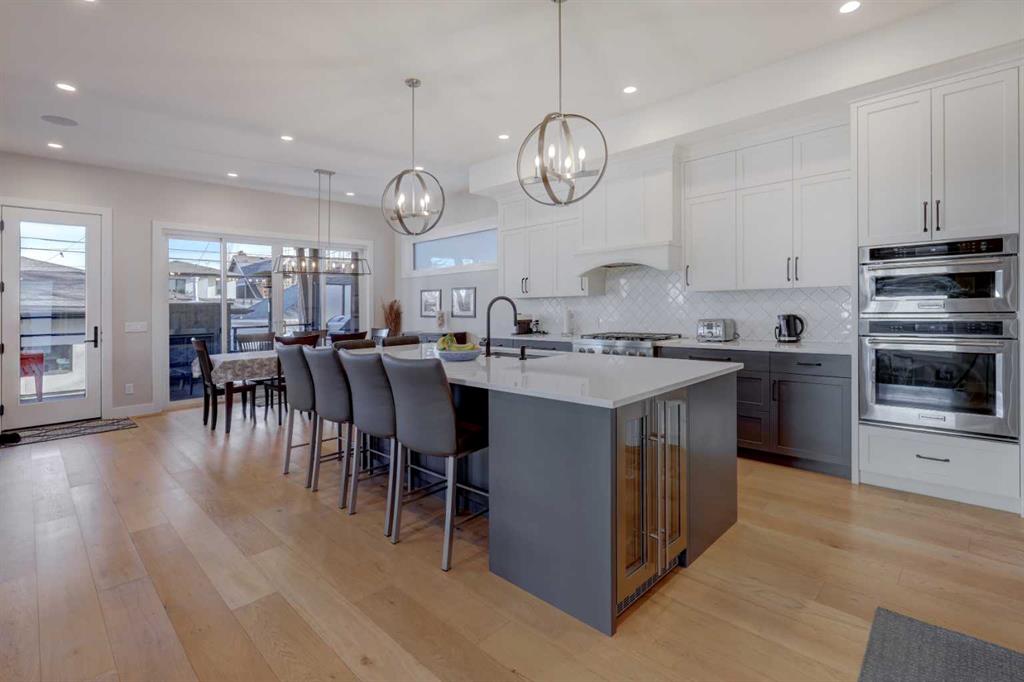 Luxury, location & thoughtful design come together in this exceptional custom-built home by William Blake Homes, just five blocks from both Marda Loop & River Park. Built in 2021, this elegant 2-storey home offers over 3600 sq. ft beautifully finished living space with amazing downtown skyline views from the upper level. A signature feature of this home is its outdoor spaces; set on an expansive (41’x126’) fully landscaped corner lot, the back yard with beautiful mature trees & elevated outdoor gathering spaces includes a covered deck with gas fireplace & built-in speakers, & large concrete patio with hot tub. The striking exterior showcases stucco, stone & faux-wood accents, timber beams & exposed aggregate steps & walkways, as well as Lumenox permanent outdoor lighting. This property includes underground sprinklers, gas bbq outlet & heated oversized (26’x21’) double garage with epoxy floors & built-in shelves. This bespoke home has a highly functional floor plan & professionally curated design. Every detail was lovingly chosen, including stunning designer lighting. Inside, natural light floods through large triple-glazed windows, highlighting wide-plank white oak hardwood floors on both the main & upper levels including the floating stairs. The main floor features a private office with built-in cabinetry, a family room with oversized windows, coffered ceiling, linear gas fireplace, custom millwork, & a large & bright dining area. The chef’s kitchen showcases KitchenAid appliances including a 6 burner gas stove, built-in oven & microwave, elegant tile backsplash, & an expansive quartz island with beverage fridge & extra storage. There’s also a walk-in pantry with window, pocket sliding door, & custom cabinetry for small appliances. The mudroom has been purposefully designed with a bench, cubbies, cupboards & even a built-in dog door! Upstairs, you’ll find a spacious bonus room with linear gas fireplace, custom millwork & built-in desk; an upper laundry room with quartz counter, sink & ample storage; & a stylish 4 piece bathroom with full tile tub/shower combo, tile floors & quartz counters. The luxurious primary retreat overlooks the backyard, offering views of downtown & the property’s gorgeous mature trees (there’s access to the private upper patio to soak in the views). The primary bedroom features a spacious walk-in closet with barn door, custom built-ins & mirror. The spa-like ensuite features tile floors, dual sinks, luxurious soaker tub, large tiled shower & private water closet. Two additional bedrooms are finished with carpet & include closet organizers. The lower level showcases a media/games room with custom millwork, speakers, & wet bar. There’s a gym with mirrored wall & rubber flooring, a 4th bedroom, & a full bathroom. This home includes central air conditioning, & is wired for data, security & speakers throughout. The mechanical system is upgraded including a Daiken Multizone furnace, HRV, infloor heating, & o/s high efficiency hot water heater.