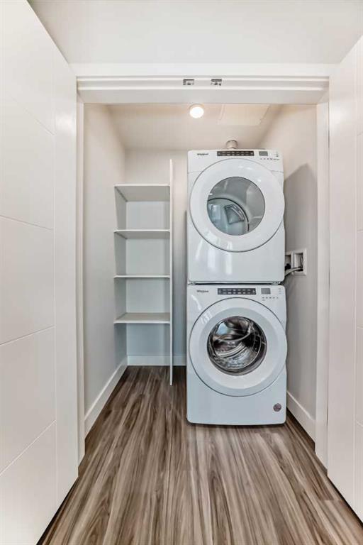 As you step through the entrance, a welcoming foyer ushers you in, providing easy access to your front closet and in-suite laundry. Moving into the expansive main living area, you’re greeted by floor-to-ceiling windows that reveal a panoramic spectacle. The open-concept layout features large kitchen, dining, and living spaces, all adorned with premium finishes, including abundant pot lights and wide plank flooring.