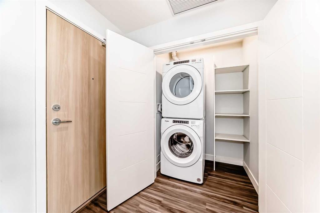 One of the most exceptional features of this residence is the floor-to-ceiling windows that frame the entire living space. Natural light floods every room, creating an inviting ambiance throughout the day. For those who love to cook and entertain, the gourmet kitchen is a dream come true, equipped with a premium European appliance package, and an oversized pantry (which is exclusive to this suite + one other 2-bed in the building). Featuring quartz countertops, 5-burner gas stove, Blomberg refrigerator and a built-in microwave. The dining area centres the open concept space with plenty of casually elegant space for meals and entertaining. Loaded with distinctive details and modern conveniences, including USB smart plugs, atmospheric lighting and more, your home is designed for maximum comfort.