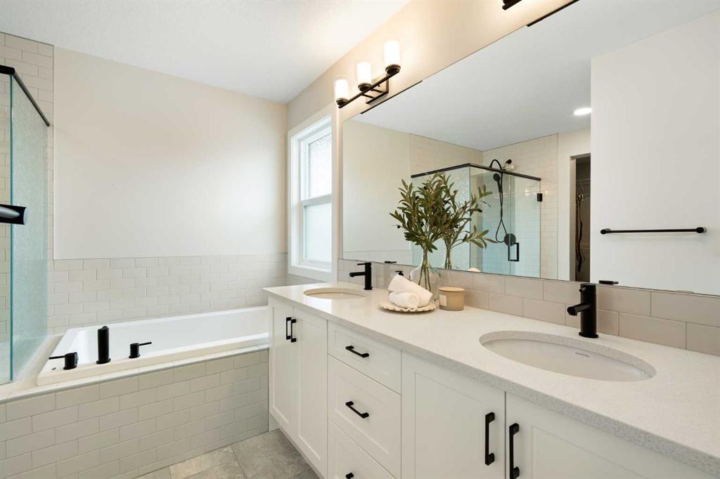 Upstairs, a central bonus room provides additional living space and separation between bedrooms. The primary bedroom offers a spacious retreat with a walk-in closet and a 5-piece ensuite featuring dual vanities. Two additional bedrooms, each with walk-in closets, a full bathroom, and a convenient upper-level laundry room complete the upper floor.