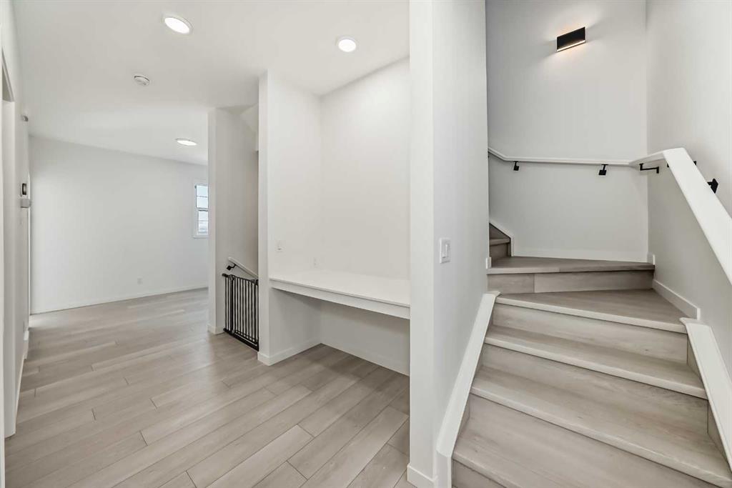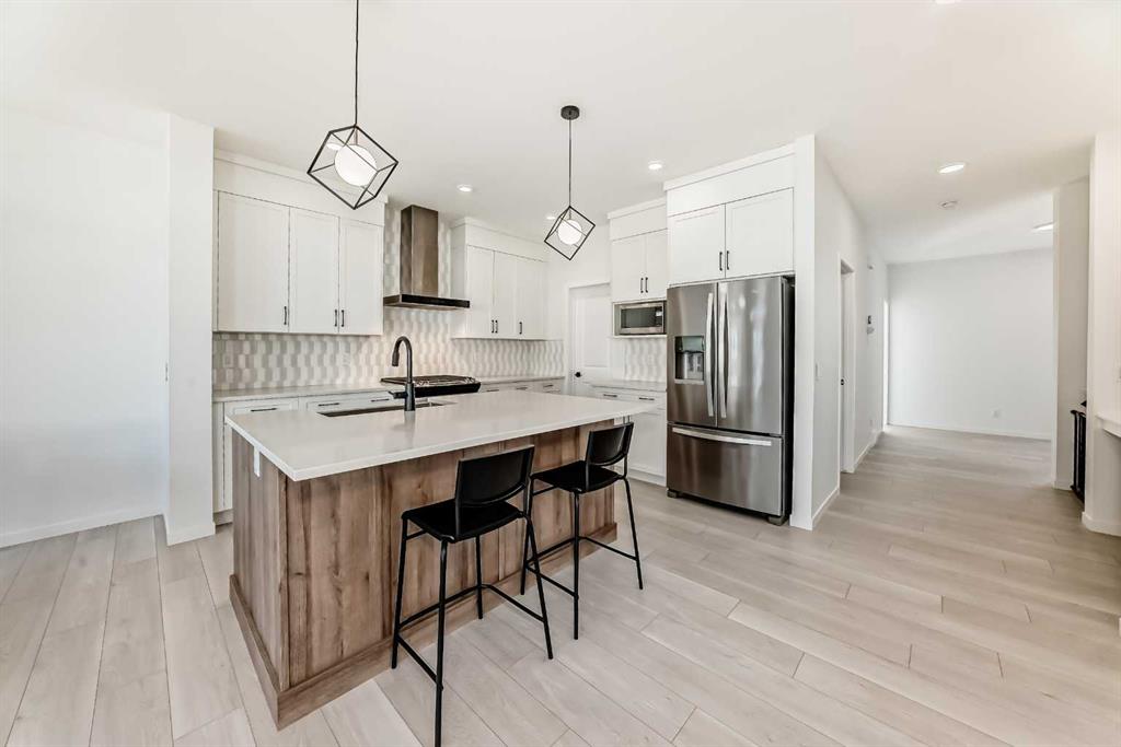 This fully upgraded 4-bedroom home , 9 ft and flat ceilings through the entire house, on a desirable pie-shaped lot offers comfort, and functionality in the sought-after community of Carrington. The main floor features a bright, open-concept layout. oversized windows, and a convenient main-floor bedroom with a full bath—ideal for guests or seniors. The chef’s kitchen is the heart of the home, with abundant cabinetry, expansive counters, a gas range, built-in microwave and oven, stainless steel appliances, and a large center island. The dining area flows into the inviting living room with a cozy electric fireplace. Upstairs, the spacious bonus room separates the luxurious primary suite—with a 5-piece ensuite and walk-in closet—from two additional bedrooms and the full bathroom. A convenient upper-level laundry adds to the home’s functionality. The fully developed basement provides a versatile recreation or play area, while the expansive backyard offers plenty of space for kids and pets to play. Located close to parks, schools, and shopping, this home delivers the best of Carrington living in a prime NW Calgary location!