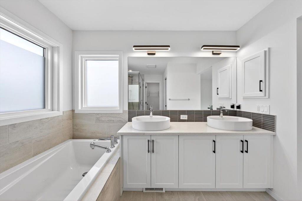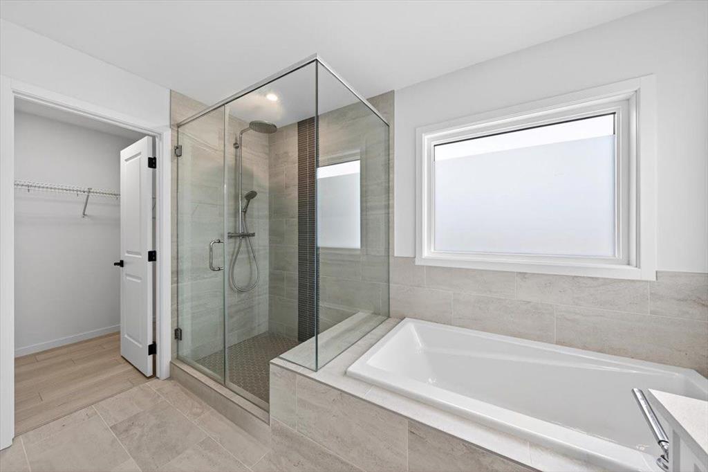 Designed with versatility and inclusivity in mind, the home features a MAIN-FLOOR BEDROOM with a FULL BATHROOM, providing an ideal arrangement for guests, seniors, or multi-generational living. Upstairs, the primary suite offers a comfortable and private retreat, featuring an OVERSIZED shower, UPGRADED rainfall showerhead, and top-mount double sinks.