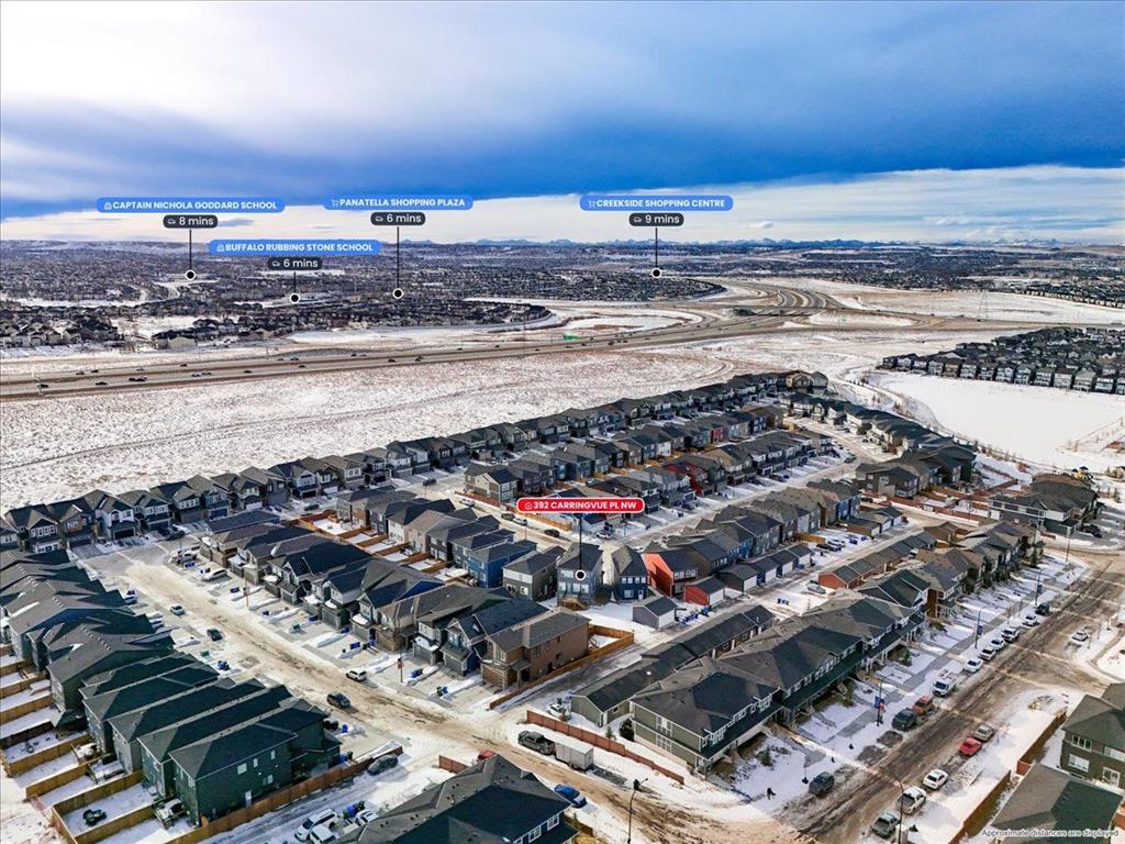 Set on a LARGE PIE-SHAPED LOT, the property boasts a beautifully landscaped backyard, creating a private outdoor space ideal for relaxing, entertaining, and family gatherings. Ideally positioned in the heart of Carrington, this home is within walking distance to parks, ponds, scenic pathways, grocery stores, restaurants, and everyday conveniences. A short drive connects you to Costco, H Mart, T&T Supermarket, Superstore, Home Depot, CrossIron Mills, the library, and Vivo Recreation Centre, while immediate access to Stoney Trail and Deerfoot Trail ensures effortless commuting throughout the city.