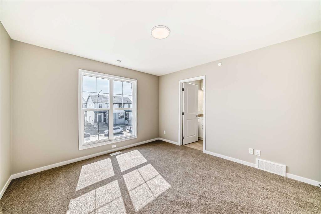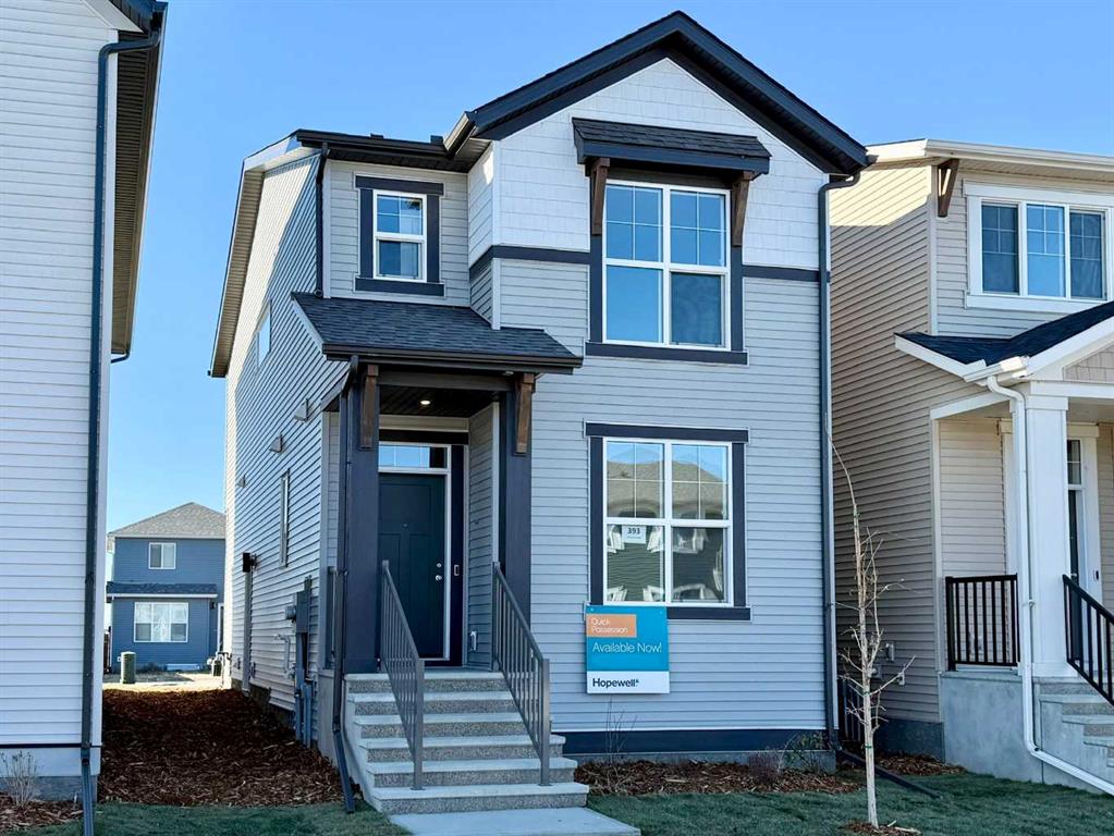If you’ve been searching for a brand-new home but don’t want to wait for construction, this is your chance. Be the first to call this beautifully designed, never-lived-in 3-bedroom home by Hopewell Residential your own. Offering nearly 1,400 sq. ft. of thoughtfully planned living space and a side entrance for a potential future basement suite (a secondary suite would be subject to approval and permitting by the city/municipality), this home blends style, function, and future flexibility. From the moment you step inside, the home feels bright and welcoming thanks to an abundance of windows and a desirable west-facing backyard that captures the afternoon and evening sun. The main floor is finished in luxury vinyl plank flooring throughout, creating a seamless, modern look that’s both durable and easy to maintain. An upgraded railing that carries up the staircase helps create an open, connected feel between the levels, enhancing the overall sense of space. The main floor is designed for everyday living and effortless entertaining. A separate living room and family room give you flexibility—whether you want a cozy TV space, a more formal sitting area, or a play area for the kids. The dedicated dining area is well-positioned between the kitchen and family room, making it ideal for family dinners, hosting friends, or gathering for those special holiday meals. At the heart of the home is the show-stopping kitchen. Here you’ll find white kitchen cabinets extended to the bulkhead, creating a clean, custom feel with extra vertical presence. These are paired with white quartz counters and a marble-style backsplash, giving the space a fresh, upscale look that will stand the test of time. Stainless steel appliances, a large central island, and generous cabinet and counter space ensure this kitchen is as functional as it is beautiful, whether you’re preparing weeknight meals or entertaining a crowd. Just off the main living area, a generous pocket office provides a quiet, dedicated space for working from home, managing household tasks, or serving as a homework zone for the kids. Upstairs, the layout continues to prioritize comfort and convenience. The spacious primary bedroom offers a calming retreat at the end of the day, complete with a stylish 4-piece ensuite featuring dual sinks & an oversized shower. Two additional well-sized bedrooms provide flexibility for kids, guests, or a home office, while the upper-floor laundry room adds everyday practicality. A full main bathroom completes the second level, making the upstairs space feel balanced and family-friendly. The side entrance opens up future opportunities to develop the basement into a suite (a secondary suite would be subject to approval & permitting by the city/municipality), creating potential for extended family living or rental income down the road. Outside, the home comes fully finished with front and backyard landscaping, including sod, mulch along the side yards. The Benning by Hopewell Residential delivers it all.