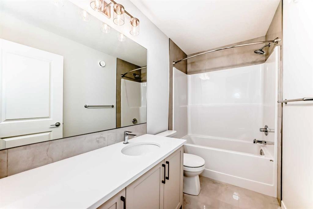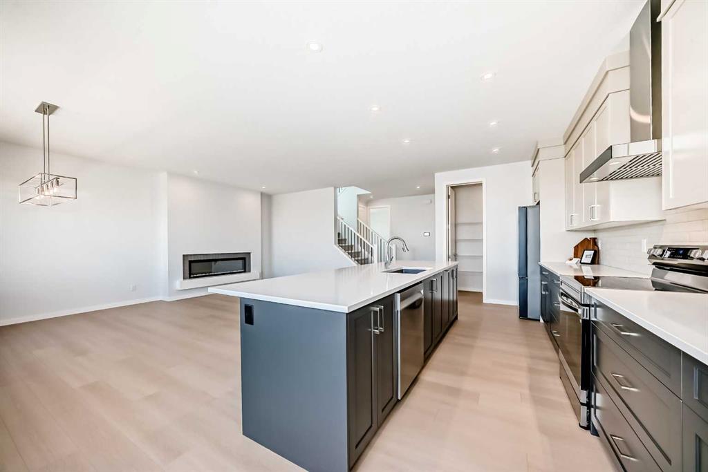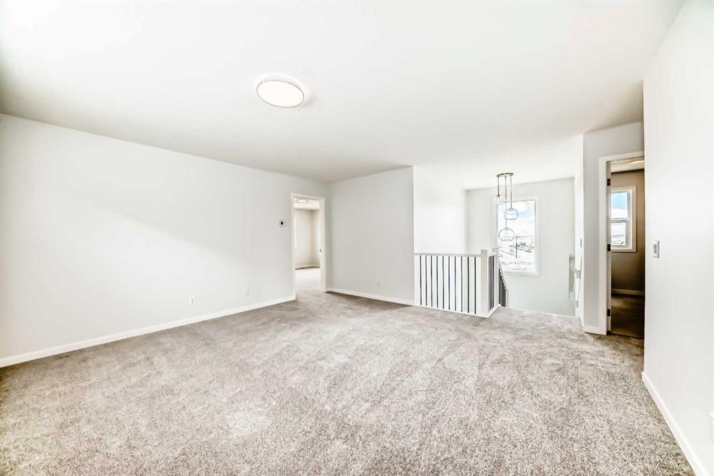 Walk out and back on the pond side green space, on a conventional lot, and brand new, welcome to this 2472 sqft single family home in popular Livingston. It features main floor bedroom/office with full bath ensuite, LVP flooring throughout the main floor, 9 feet ceiling on the main floor and basement, 8 feet height doors on the main floor, upgraded cabinets with 2 tone colors, quartz counter tops in the kitchen and bathrooms, knock down ceiling, wrought iron spindles on the stairs, and large deck. Upper floor has 3 bedrooms all with walk in closet, large master bedroom with beautiful view, large ensuite with double vanity sinks, large soaker tub, and separated tiled shower, and large walk-in closet, large bonus room with window, and spacious laundry room. Main floor has large living room, large electrical fireplace, huge kitchen with upgraded stainless-steel appliances and a chimney hood fan, built in microwave, sliding door to large deck, and upgraded lighting package. Walk out basement with lots windows rough-ins for future hood fan, bathroom, and washer/dryer. It closes to green space, ponds, future school, and easy access to major roads. ** 396 Herron Landing NE **