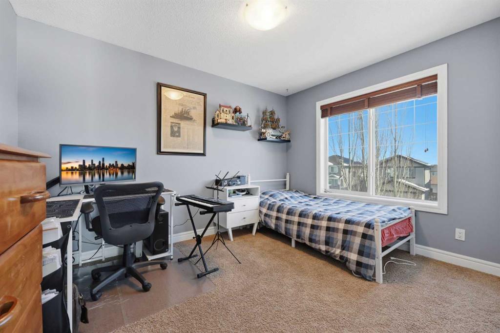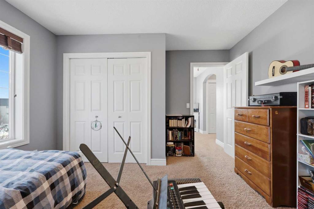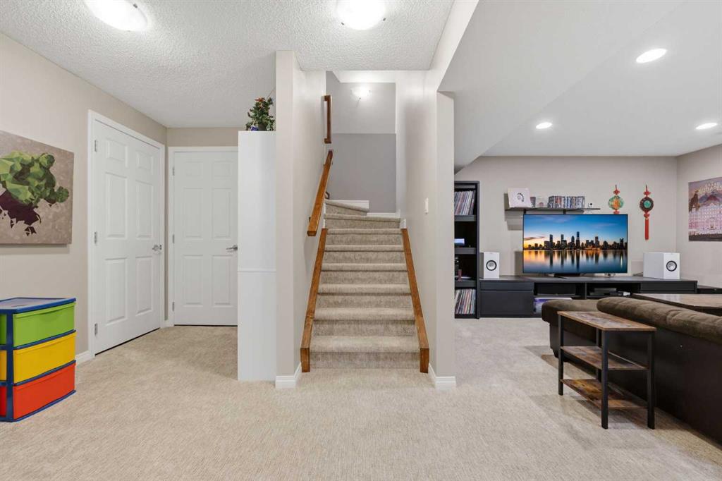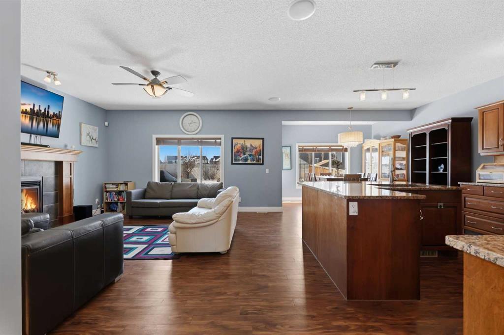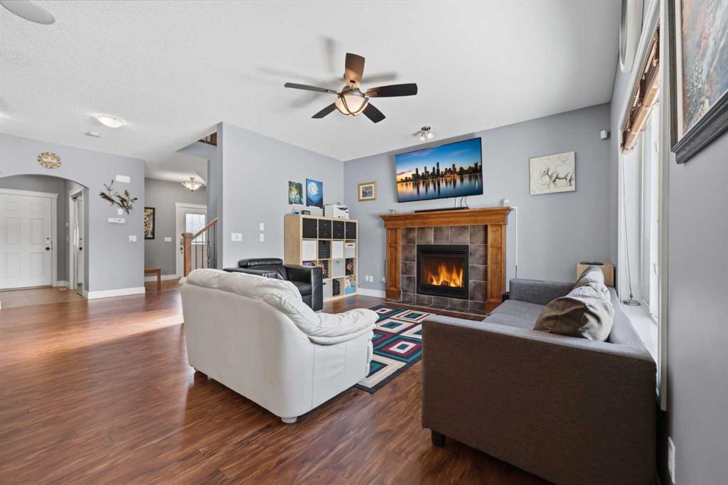 Stepping inside the front door, you’re greeted by a spacious front entry with a massive walk-in closet (a rare and genuinely useful feature), plus a dedicated main floor office. The kitchen is functional, featuring stone countertops, a large pantry, and new high-end appliances, all tied together with laminate flooring across the entire level. This home leans into entertaining, with a built-in speaker system that flows from the interior to the backyard deck. Upstairs, you’ll find FOUR generously sized bedrooms, including a primary retreat with a walk-in closet and a five-piece ensuite as well as a BONUS area and a 5-piece bath. The fully developed basement adds real flexibility—complete with a FIFTH bedroom, full bathroom, and a comfortable rec space with a wet bar and second fireplace. Central A/C, two hot water tanks, and a DOUBLE ATTACHED, HEATED garage are already in place. Located close to schools, shopping, playgrounds and pathways, with the added bonus of green space right next door, this is a solid, move-in-ready option in one of Airdrie’s most family-friendly communities.