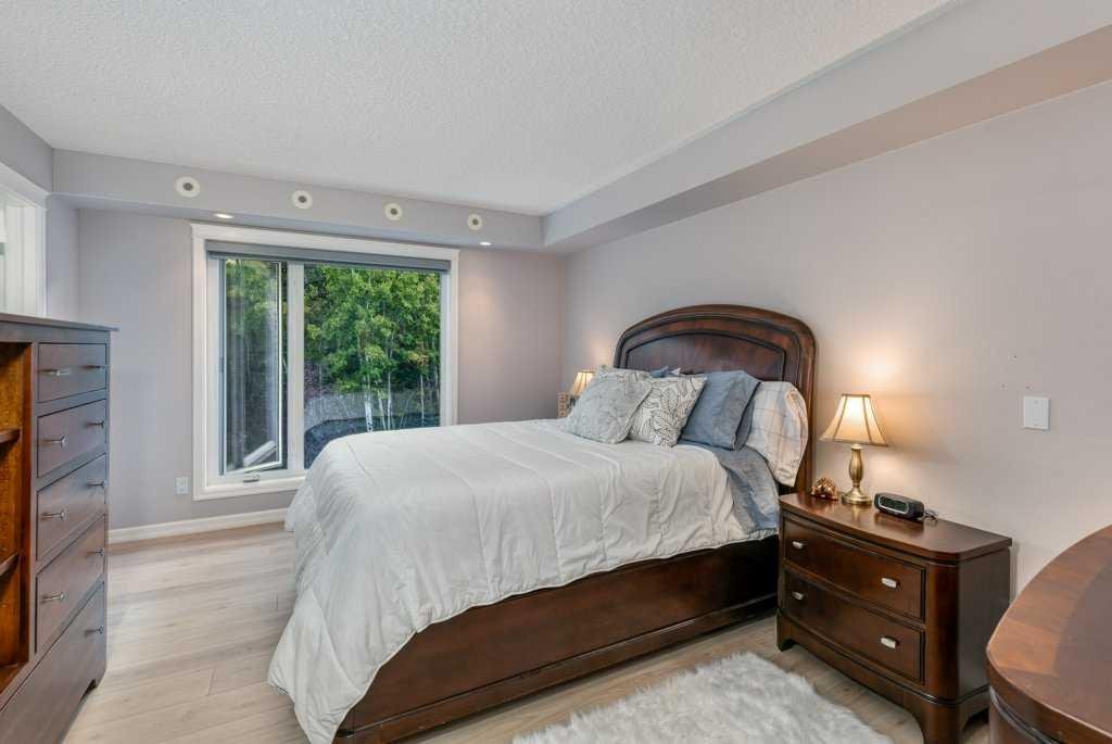 The primary bedroom window backs onto a forested area, making it extremely private. The spacious ensuite includes a soaker tub, separate shower and large walk-in closet. The second bedroom and full bath are ideal for guests. In-suite laundry is located near the secondary exit, which leads directly to an outdoor greenspace. There is also the added bonus of a sink in the garage, with hot and cold water. Recent updates include a new hot water tank, new laminate flooring, new MET blinds (including some darkening blinds and motorized blinds) and custom cabinet work in the pantry & front closet. Steps from the river and walking paths, this home is well-suited for buyers seeking a practical, low-maintenance lifestyle in a quiet community.