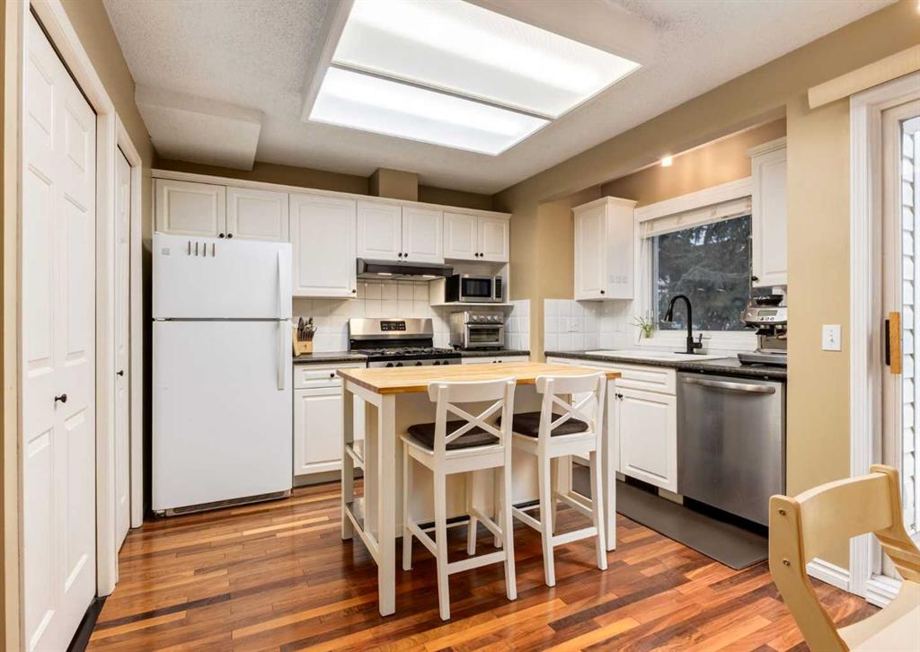 Discover refined urban living nestled in the heart of Tuxedo Park—one of Calgary’s most convenient and charming inner-city neighbourhoods. Enjoy exceptional walkability to trendy shops, diverse restaurants, lush parks, golf courses, and top-rated schools, with seamless access to Highway 1, Deerfoot Trail, downtown Calgary, and the airport. This bright move-in-ready home showcases expansive windows flooding the space with natural light, tasteful neutral colors, and central air conditioning for year-round comfort. Step inside to an inviting main level featuring a spacious living room anchored by a cozy corner gas fireplace—perfect for relaxing evenings. Flow seamlessly into the dining area and white kitchen, complete with a generous island for casual meals, ample pantry storage, and convenient main-floor laundry. A stylish powder room and direct access to your private balcony complete this entertaining-friendly floor. Ascend to the upper level, where a luxurious spa-like bathroom awaits with dual sinks, a skylight bathing the space in sunlight, an oversized shower, and a jetted soaking tub for ultimate relaxation. Two well-proportioned bedrooms include the serene primary suite with soaring vaulted ceilings and its own exclusive balcony—an ideal retreat. The fully developed lower level offers a versatile third bedroom/den or media room with a full ensuite bath, plus direct entry to the attached single garage for added convenience. Multiple outdoor havens, including upper and lower balconies plus a ground-level deck, make al fresco dining and summer gatherings effortless. This Tuxedo Park treasure perfectly blends sophisticated style, practical design, and an unbeatable location—urban vibrancy meets tranquil escape. Don’t miss this must-see home; check out the video in the media link and schedule your private viewing today!