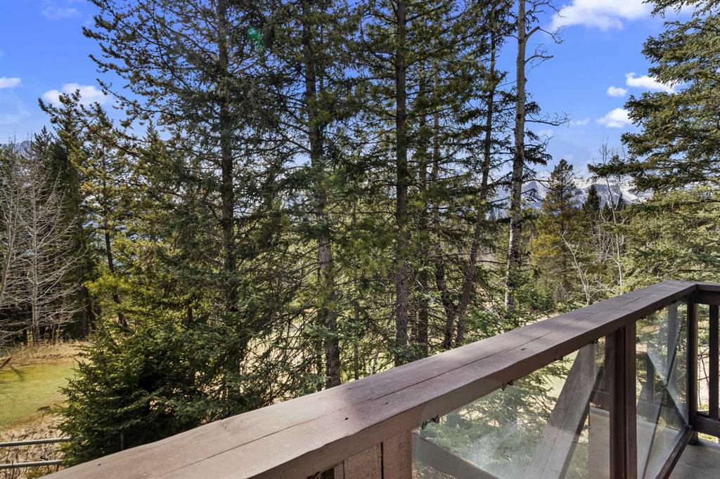 Sitting at the quiet end of Stone Creek Road, this 3,000+ sq ft southwest-facing end-unit is perched up in the trees above the Bow Valley, looking out over the 9th tee of Silvertip Golf Course and the full south range beyond. Walk out your front door and you are straight onto the trail network. No neighbours behind, no traffic coming through, just the creek, the trees, and the mountains in every direction.