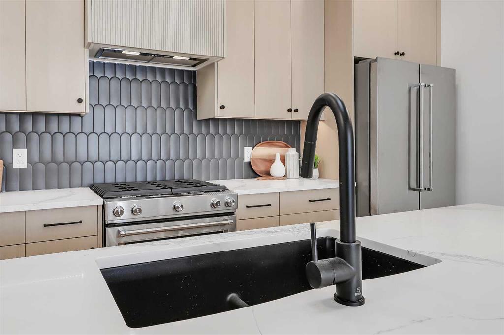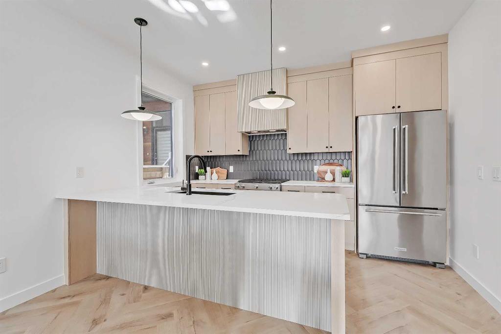 Move into the heart of South Calgary today with this brand-new, walkout townhome that perfectly blends luxury, location, and low-maintenance living! Thoughtfully designed w/ 3 beds, 2.5 baths, and a LEGAL 1 BED SUITE (approved by the city), this is inner-city living without compromise! The interiors strike a perfect balance between modern luxury & livable design. Find high-end finishes that are rare to find at this price point — blonde wood tones, sleek custom cabinetry, and modern & thoughtful tile. Designer hardware, mid-century inspired embellishments, and a clean neutral palette give this space a fresh, elevated vibe. The kitchen is the heart of the home, designed w/ both form and function in mind. A large quartz island anchors the space w/ bar seating for casual meals or morning coffee. There’s a full stainless steel appliance package, generous cabinetry, and a stylish backsplash that adds just the right amount of visual interest. It’s open to the dining area and spacious living room & balcony, creating the perfect layout for hosting or just relaxing at home. And don’t forget the upscale powder room, complete w/ designer lighting. Upstairs, the primary suite feels like a boutique hotel retreat w/ a PRIVATE BALCONY, a large walk-in closet, and a modern 3-pc ensuite w/ a fully tiled walk-in shower. Two additional bedrooms and a full bathroom give you space for guests, kids, or home office! And yes, there’s a laundry room upstairs, tucked conveniently between bedrooms. Downstairs is perfectly set up for a mortgage helper, additional income generator, or the perfect spot for multi-generational living w/ a LEGAL 1-BED SUITE (approved by the city). The modern touches flow into this space as well, w/ an open kitchen & living room space w/ ceiling-height cabinetry, stainless steel appliances, and quartz countertops, complete w/ separate laundry, a great-sized bedroom, and a full 4-pc bathroom. There is a separate entrance to the suite, as well as access from the main home to the suite for complete ease of use. The suite also boasts a private deck. The low-maintenance landscaping and a detached garage at the back are a serious bonus in the inner city. The backyard also features upright bike racks & secure CycleSafe lockers for added convenience. You’re tucked into a tree-lined street in South Calgary, but just a short stroll to absolutely everything. Our Daily Brett and South Calgary Pool & library are just at the end of the street, cSPACE King Edward’s arts & community programming is just a few blocks over, and all the everyday amenities in Marda Loop are w/in walking distance — Blush Lane Organic Market, Safeway, Shoppers, fitness studios, and an incredible lineup of restaurants. You’re minutes from 17th Ave’s restaurants & nightlife, and a quick commute to downtown! Whether you’re looking for a stylish new home in an established neighbourhood or a long-term rental property w/ strong demand, this unit is an incredible opportunity! *pictures from show suite*