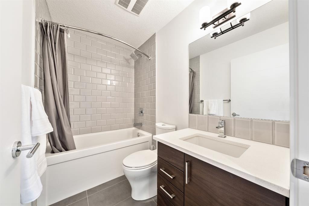 A rare opportunity to live in a luxurious end unit townhome on a quiet street offering over 2000 sq ft in the One of Calgary’s most desirable inner-city neighborhoods Killarney. This immaculate home has plenty of upgrades; 9’ knockdown ceilings, gleaming hardwood floors, upgraded plumbing fixtures, Hunter Douglas blinds, stone counters, custom closets, fresh paint, the comforts of air conditioning and a concrete wall separating you and the one neighbor. Head down the courtyard to unit 4 where you are greeted by a large front foyer and convenient direct access to the heated garage. This space was intentionally designed to be on its own separate level as a drop zone and to keep the mud and mess down and away. Upstairs is flooded with natural light. The massive chef inspired kitchen is a focal point with slow close cabinets that reach to the ceiling, built in wine rack, undercabinet lights, premium SS appliances (including a gas range) and chimney hood fan, an expansive 10-foot island with gorgeous quartz counters, timeless tile backsplash and a large corner pantry for additional storage. Perfect for entertaining the kitchen looks onto the spacious dining room and inviting living room showcasing a gas fireplace with stone detail. Off the living room is a large, covered patio and office perfect for those who work from home, or as a playroom. The powder room is tucked away on its on separate level for privacy and includes side by side laundry with cabinets to keep you organized. On the upper level are two well sized bedrooms one with downtown VIEWS, a 4pc main bath and the primary retreat. This generous sized primary is a true sanctuary with its own private patio a massive walk-in closet and a spa inspired ensuite Including dual sinks, a large soaker tub, and fully tiled shower with 10 mm glass. Beyond Home you will love the lifestyle. Only minutes away from downtown, close to parks, shops, restaurants, schools, the rec center, bow river path system, shaganappi golf course and ctrain! Providing endless opportunities for work and play. If you have been searching for a home that balances luxury with livability in an unbeatable location schedule your private tour today!