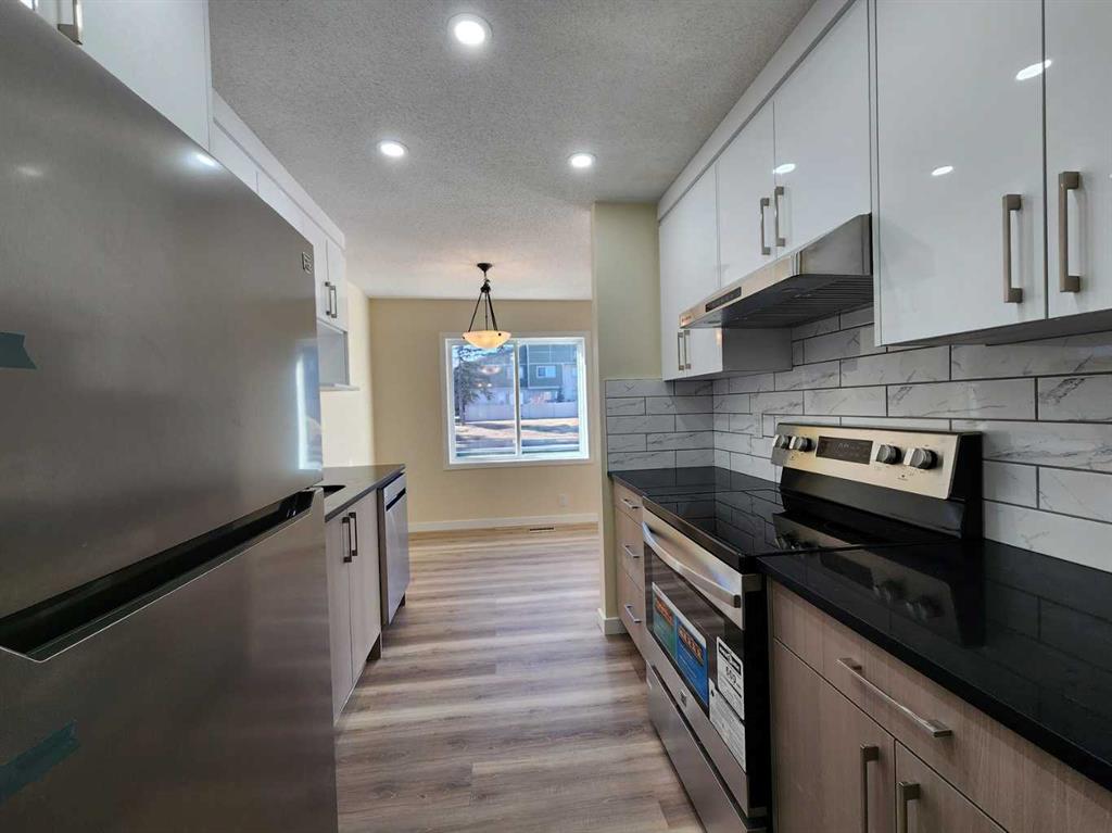 No condo fees and walking distance to school and public transits. Good starter home or investment property, welcome to this fully renovated townhouse in convenient Thorncliffe. It features new paint, new vinyl plank floorings throughout, new appliances, new quartz counter tops in the kitchen and bathrooms, new cabinets and back splashes, light fixtures, and newer windows. Upper floor with 3 good size bedrooms and 1 full bathroom. Main floor with large and sunny living room, large window, spacious kitchen and dining area, stainless steel appliances, and half bathroom. Basement with laundry area, and updated furnace and hot water tank. It closes to school, playground, public transit, shopping, and easy access to major roads. ** 4, 6424 4 Street NE **