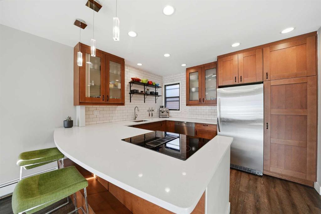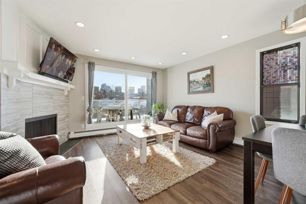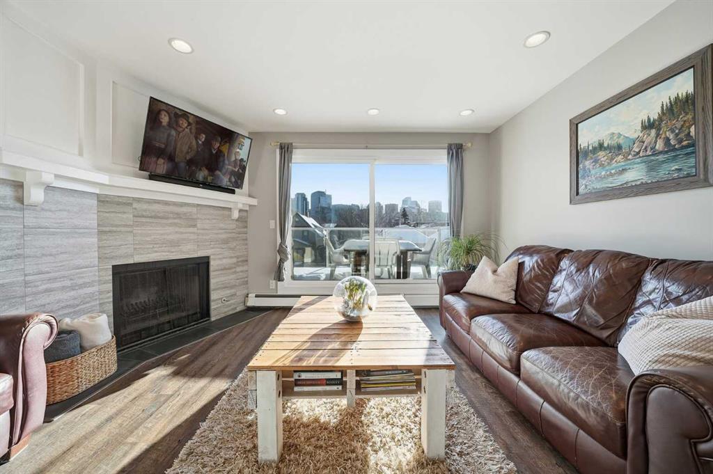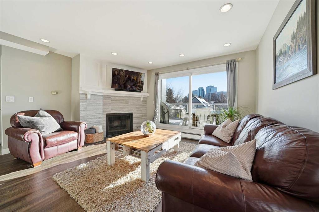 Unique opportunity in the heart of Sunnyside, just steps to the LRT, Safeway, the shops and restaurants of Kensington, Bow River pathways, and a quick walk into Downtown! This rare three-bedroom condo offers the perfect blend of inner-city convenience and comfortable living, all in a beautifully renovated, move-in-ready package. Flooded with natural light, the unit features a newly updated south-facing balcony where you can soak up the sun while enjoying spectacular downtown skyline views: the ideal spot for your morning coffee or evening unwind. Inside, the inviting living room is anchored by a real wood-burning fireplace with gas log lighter, creating a warm and cozy atmosphere that’s hard to find in condo living. The modern kitchen overlooks the spacious dining and living areas, making it perfect for entertaining or everyday living. Thoughtfully designed, the private rear wing of the unit offers three generous bedrooms, including a primary retreat complete with a convenient two-piece ensuite. Additional highlights include in-suite laundry, dedicated in-suite storage, and an exceptional layout that maximizes both function and flow. Whether you’re walking to work, biking along the river, or enjoying everything Kensington has to offer, this is truly inner-city living at its best. Nothing to do but move in and enjoy; don’t miss this rare opportunity!
