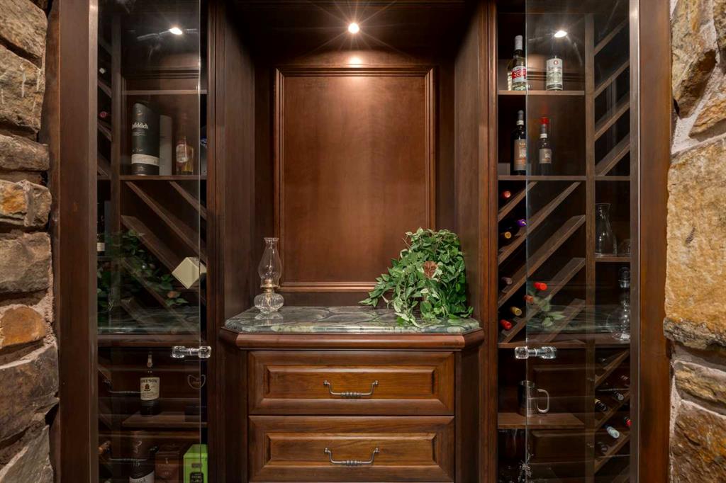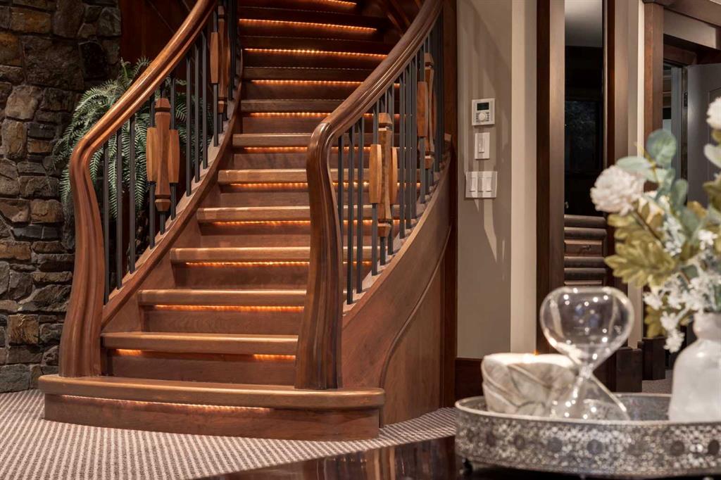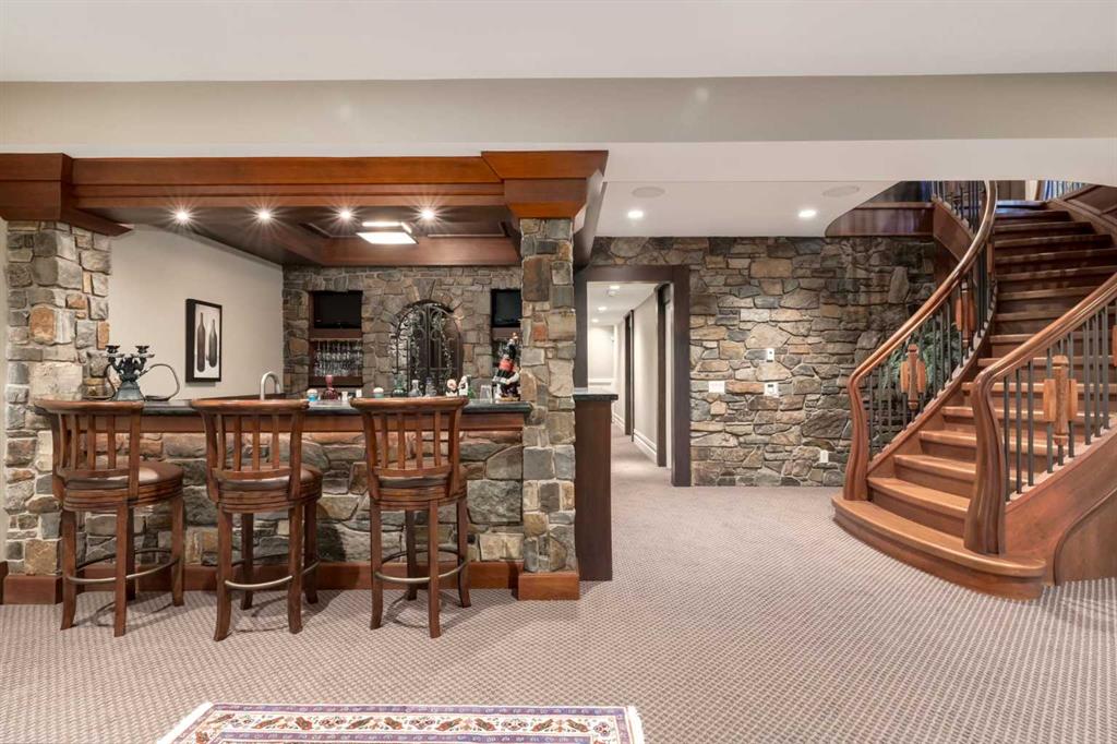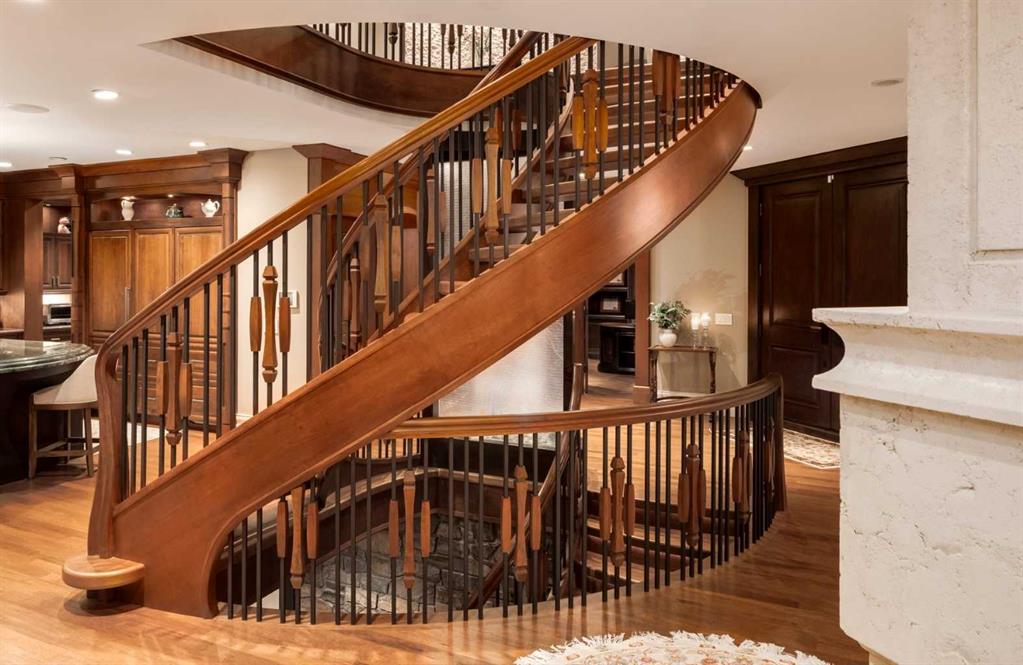 Modelled in the same Chateau style as the Banff Springs Hotel and the Chateau Lake Louise, this exceptional home boasts the same quality materials found in these iconic properties. As you tour this masterfully designed home, you will be awestruck by the unparalleled attention to detail and the symmetry and balance in repeating themes. Circular elements can be found on the interior doors, in the inlaid pattern on the driveway, crafted into the custom hood fan and in the decorative tile backsplash. Arched doorways and windows, domed ceilings and barrel vaults are some of the curved elements that soften the straight lines of perfect symmetry throughout the home. Forged steel light fixtures, door handles and railings are softened by rich wood and natural stone. There was truly no detail overlooked when creating this work of art. With over 4,500 square feet of finished living space, five bedrooms, all with ensuite bathrooms and walk-in closets, a walk-out basement, a large bonus room, a spectacular entertaining bar, a media room, two staircases and an oversized triple attached garage, this home is perfect for large families. Impeccably finished with only the highest quality materials, this home features top-of-the-line appliances, carefully curated hardware, hardwood and stone imported from Brazil, exterior copper accents, cobblestone and endless custom millwork crafted on-site. With so many incredible details, this home must be seen to be truly appreciated.