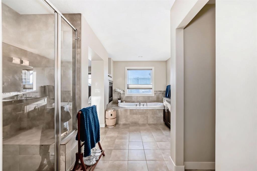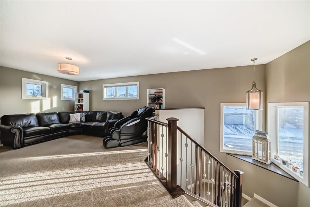 BEAUTIFUL ESTATE HOME | UPGRADES THROUGHOUT | THOUGHTFULLY DESIGNED | SUNNY WEST FACING BACKYARD | This stylish ALBI built estate home is fantastic…ideally located in a quiet cul-de-sac, on a large corner lot (allows for ample parking) with a west facing backyard, offers views of the nearby pond & is nicely located close to the lake entrance allowing you to easily enjoy this four season community! Thoughtfully designed, this home features a terrific floor plan with over 2600 SQ FT!! This home is bright & spacious with an open concept layout, 9′ ceilings, & a stunning corner staircase…plus an abundance of natural light. The main level is finished with Brazilian hardwood & tile flooring throughout, offers a large foyer that features a custom built-in bench & coats hooks; there is a front flex room with an elegant set of triple french doors…this space is perfect for a home office, hobby room or even a main floor bedroom (with closet)! The gourmet kitchen, sure to please any chef, showcases full height designer cabinetry, granite counters, custom marble backsplash, stainless steel appliances including a 5 burner gas cooktop & an integrated hood fan…plus a large island & a huge walk-in pantry! The dining area overlooks & opens to the west facing backyard with a large 2 tier deck…perfect for enjoying a sunny afternoon or evening BBQ! The great room, which blends seamlessly off the kitchen & dining areas, offers large windows & a gas fireplace finished with a custom stone & mantle surround…a timeless classic look! Upstairs is host to 3 generous sized bedrooms & a spacious bonus room. The Master bedroom showcases a dramatic vestibule entry with double doors, and features a 2 sided gas fireplace that is shared with the tranquil ensuite…there is a large vanity with dual sinks, granite counters, spa-like soaker tub, oversized tiled shower, and a large walk-in closet with private access to the convenient laundry room. Completing the upper level are the 2 additional bedrooms, each with their own walk-in closet & full 5pc bathroom with dual sinks. The sunny backyard is your private oasis…fully fenced & landscaped with a large tiered deck, mature trees & shrubs, hot tub and a view of the nearby tranquil pond…an ideal place for basking in the sun, enjoying family time or hosting friends & family. Nicely located with quick & easy access to nearby walking paths, schools, shops, restaurants, the lake entrance plus an abundance of other nearby amenities! Other extras include central AC, water softener, BRAND NEW hot water tank, plus EXTERIOR REPAINT of the siding & trim!!!
