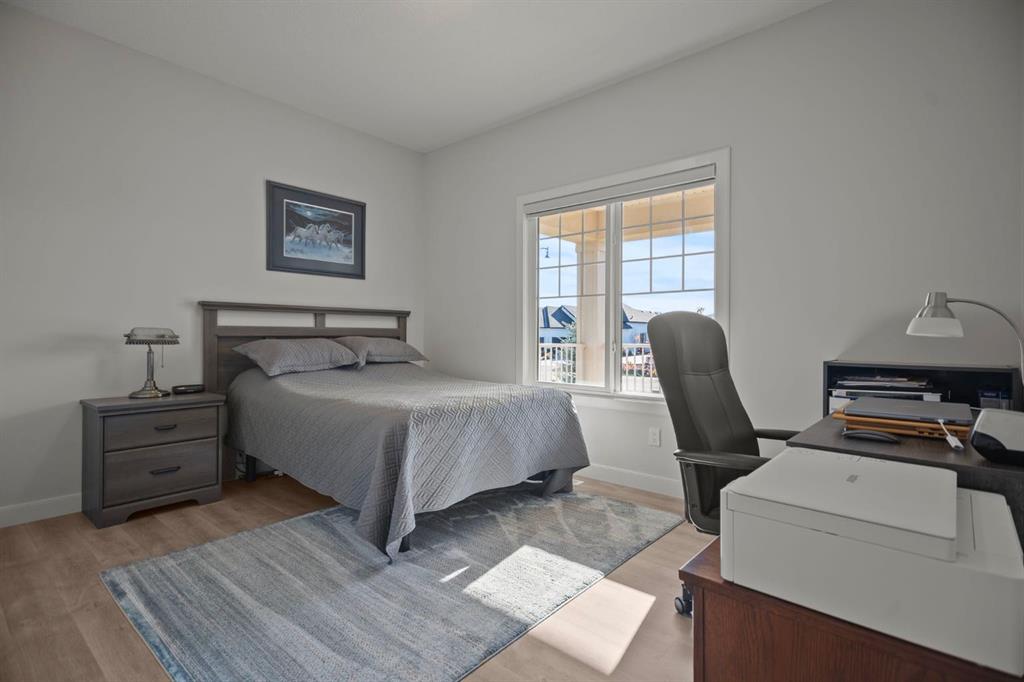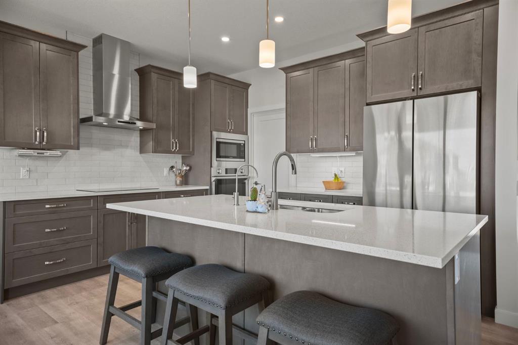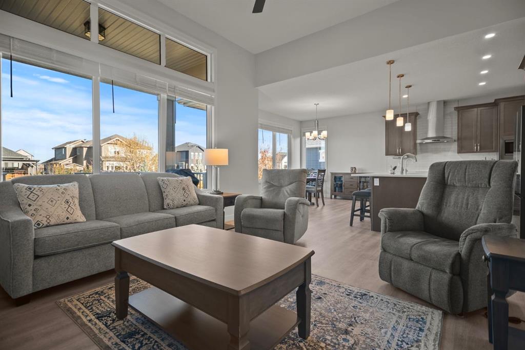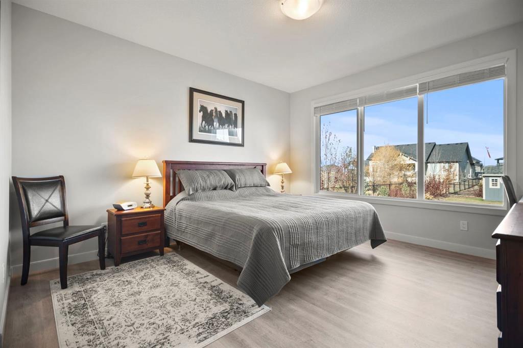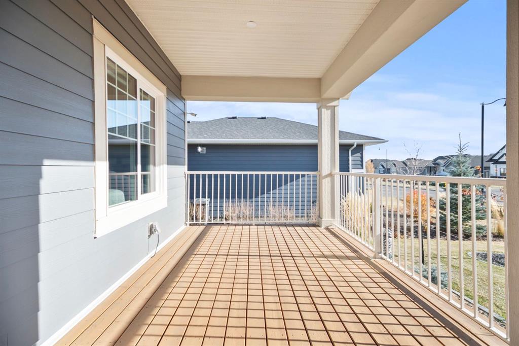 Welcome to this beautifully crafted 2023 bungalow offering over 3,000 sq ft of thoughtfully designed living space in one of Okotoks’ most sought-after locations. With exceptional curb appeal, covered front and back decks, and a large fully fenced rear yard, this home perfectly blends modern comfort with everyday functionality. Step inside to a bright, open-concept main floor where expansive windows flood the space with natural light. The spacious living room is anchored by a stunning gas fireplace, creating a warm and inviting focal point. The seamless flow between the living, dining, and kitchen areas makes this home ideal for both entertaining and relaxed family living. The kitchen is as stylish as it is practical, featuring stainless steel appliances, a large central island, quartz countertops, and a walk-in pantry for added storage. Whether hosting guests or enjoying quiet mornings at the island, this space truly feels like the heart of the home. The main level offers 1,571 sq ft with two generous bedrooms, including a beautiful primary retreat complete with a stunning walk-in closet and spa-inspired ensuite featuring a double vanity and a luxurious soaking tub. A second 3-piece bathroom and convenient main-floor laundry complete this level. Downstairs, the fully finished basement adds an additional 1,437 sq ft of living space, including a large recreation room perfect for movie nights, games, or a home gym. Two additional bedrooms and a 4-piece bathroom provide flexibility for guests, teens, or multi-generational living.