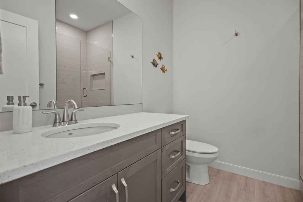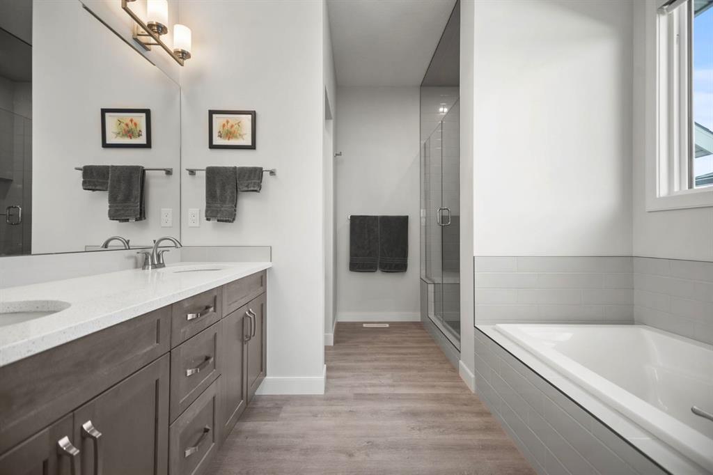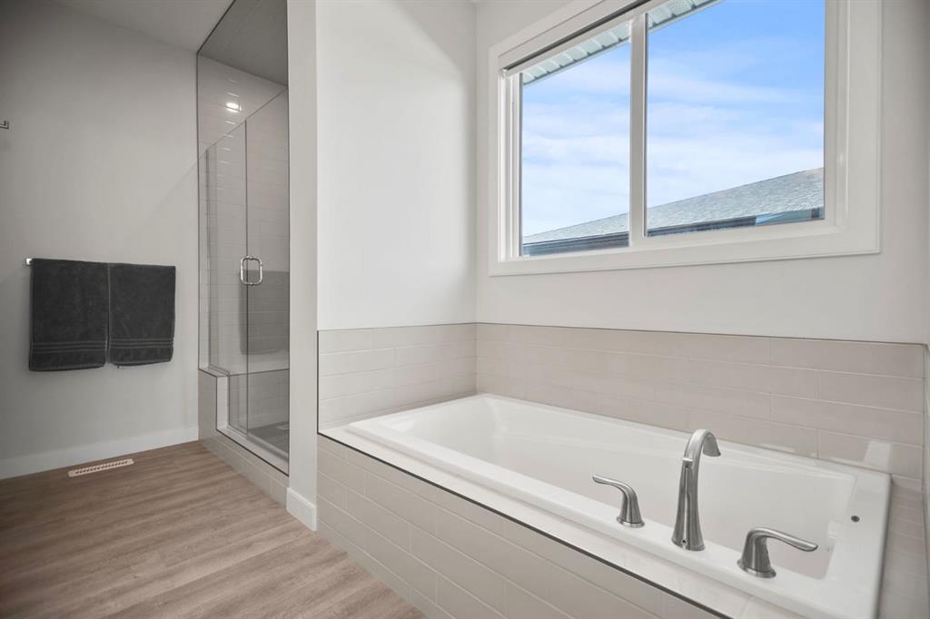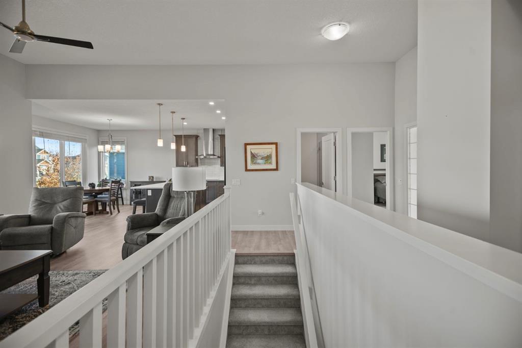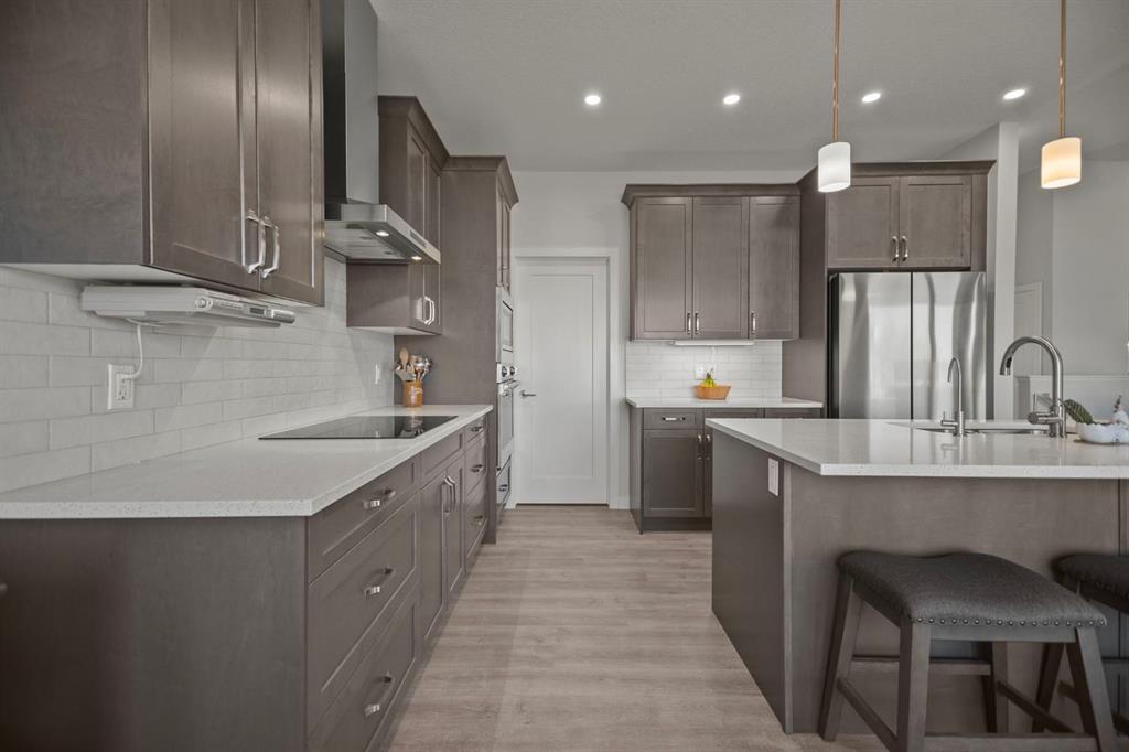 Welcome to this beautifully crafted 2023 bungalow offering over 3,000 sq ft of thoughtfully designed living space in one of Okotoks’ most sought-after locations. With exceptional curb appeal, covered front and back decks, and a large fully fenced rear yard, this home perfectly blends modern comfort with everyday functionality. Step inside to a bright, open-concept main floor where expansive windows flood the space with natural light. The spacious living room is anchored by a stunning gas fireplace, creating a warm and inviting focal point. The seamless flow between the living, dining, and kitchen areas makes this home ideal for both entertaining and relaxed family living. The kitchen is as stylish as it is practical, featuring stainless steel appliances, a large central island, quartz countertops, and a walk-in pantry for added storage. Whether hosting guests or enjoying quiet mornings at the island, this space truly feels like the heart of the home. The main level offers 1,571 sq ft with two generous bedrooms, including a beautiful primary retreat complete with a stunning walk-in closet and spa-inspired ensuite featuring a double vanity and a luxurious soaking tub. A second 3-piece bathroom and convenient main-floor laundry complete this level. Downstairs, the fully finished basement adds an additional 1,437 sq ft of living space, including a large recreation room perfect for movie nights, games, or a home gym. Two additional bedrooms and a 4-piece bathroom provide flexibility for guests, teens, or multi-generational living.